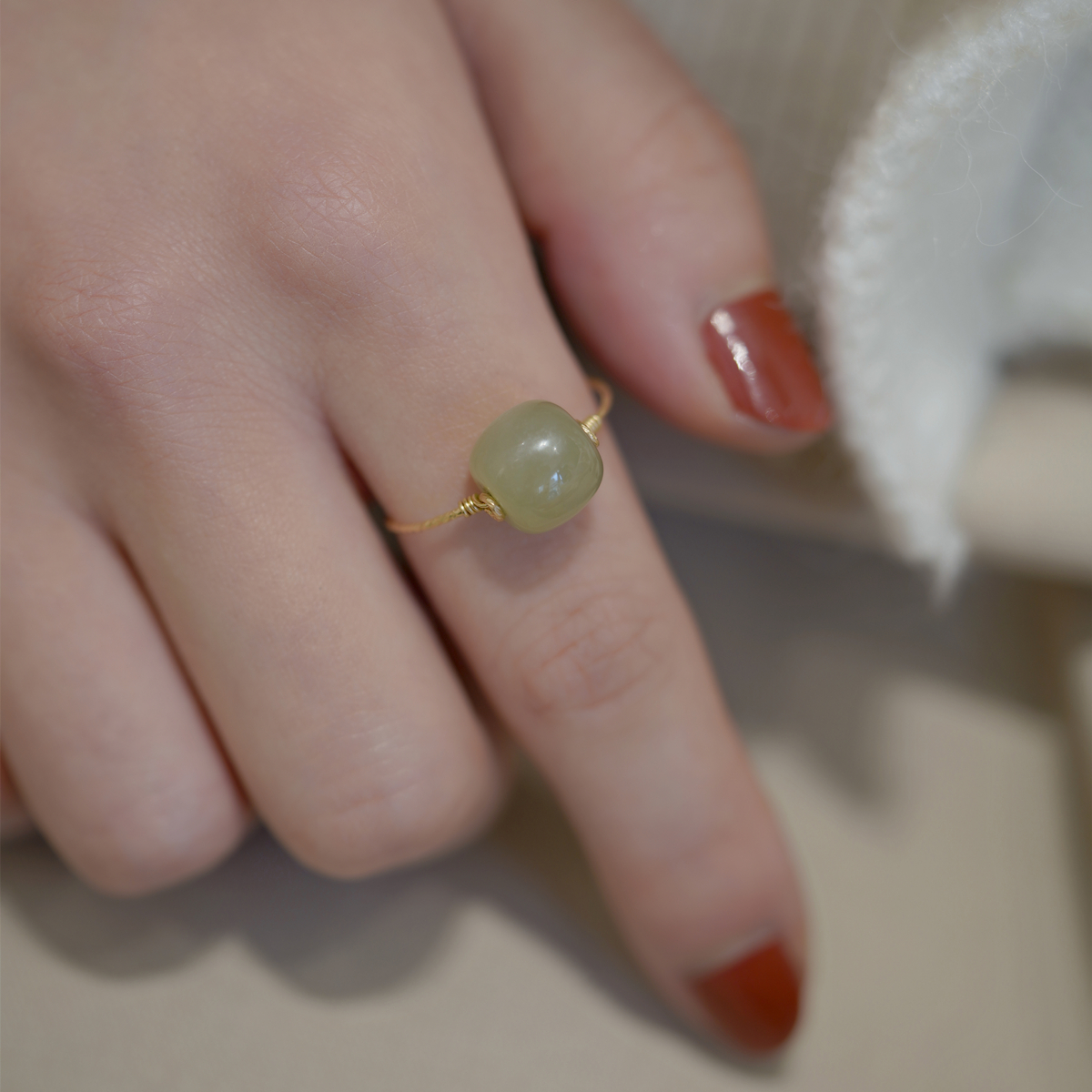 赛赛莉安天然和田玉14K包金戒指高级感小众设计气质礼物女不掉色