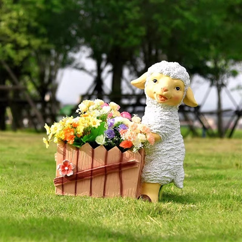 卡通羊大花盆可爱动物创意装饰品阳台多J肉花园庭院园林布置摆件