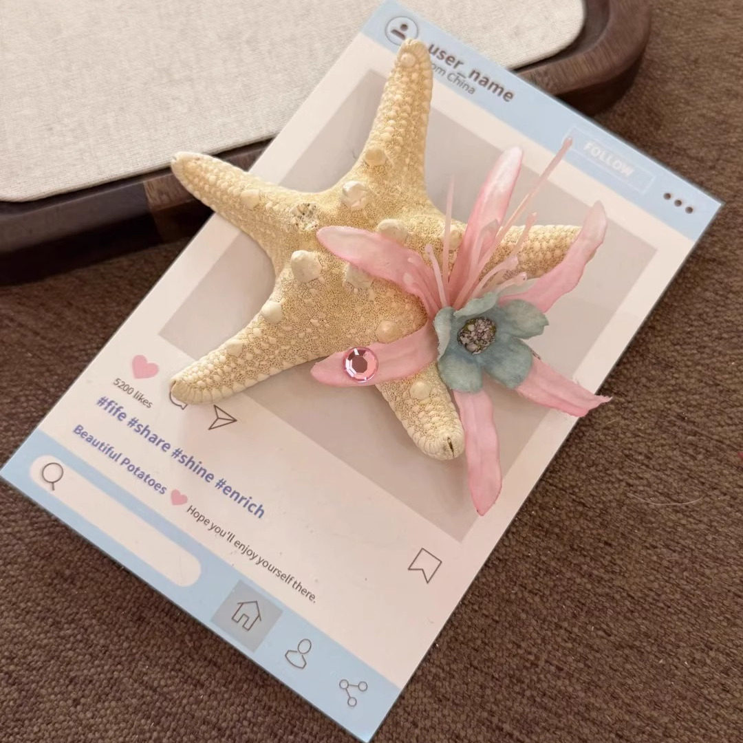 韩版闪粉树脂星星发夹美人鱼公主海洋系列发夹日常约会海滩装饰