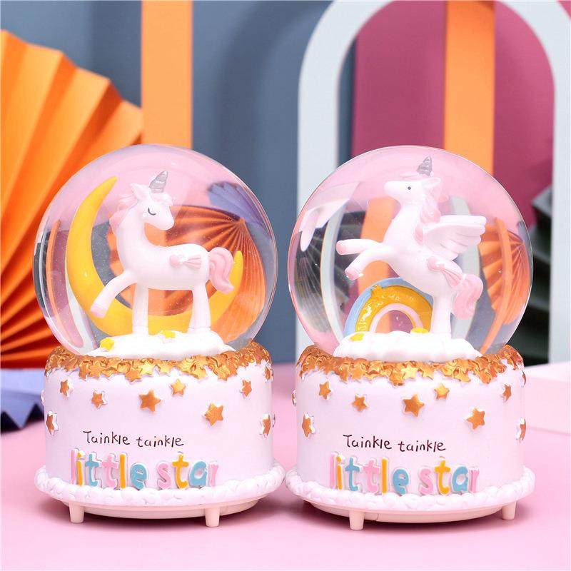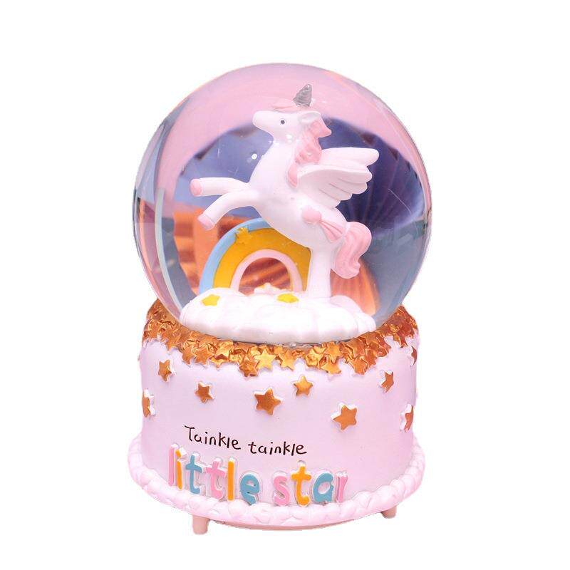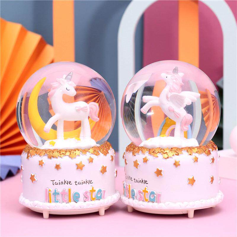 创意学生家居摆件月亮梦幻白色马水晶球 旋转带灯雪花水球音乐盒