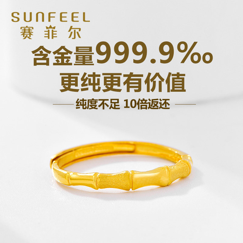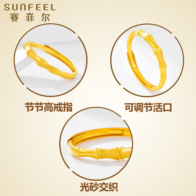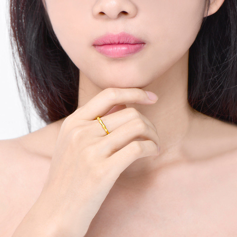 赛菲尔竹节高升足金黄金戒指足金999.9吉祥活口竹子指环尾戒女友