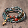 原创复古水草玛瑙圆珠多层手链女混搭铜珠个性手串文艺民族风手饰