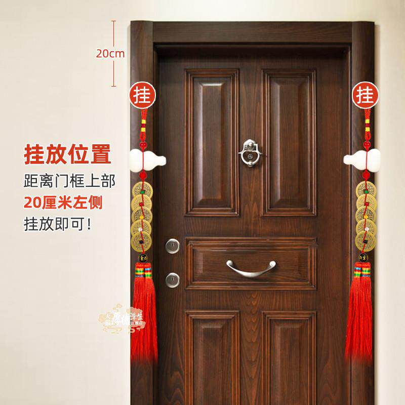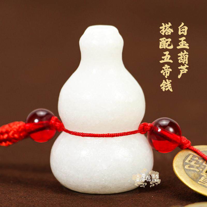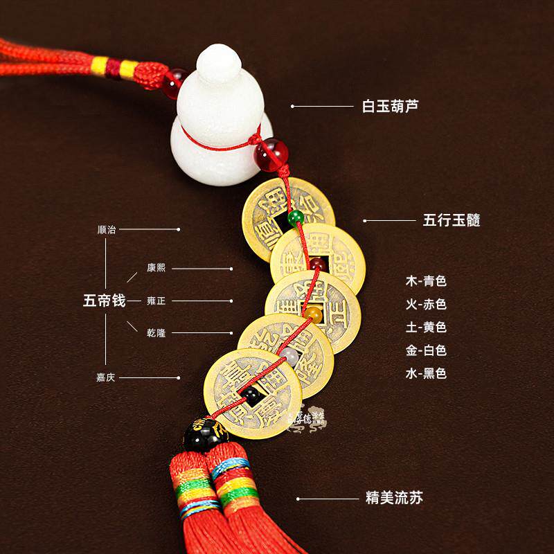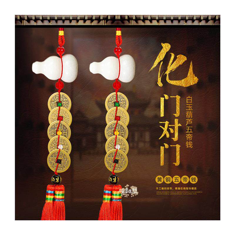 天然白玉葫芦五帝钱门对门挂件红色黄铜仿古钱币布帘吊坠五行玉髓