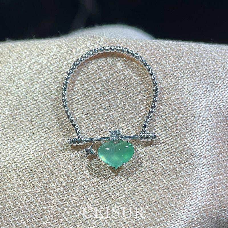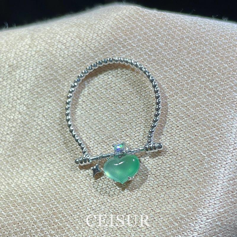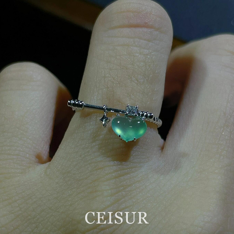 新中式复古绿色爱心戒指女独特气质百搭指环小众设计高级感食指戒