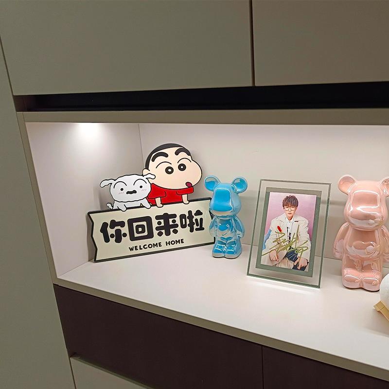 蜡笔小新玄关装饰摆件欢迎回家客厅电视柜桌面摆件装饰创意卡通