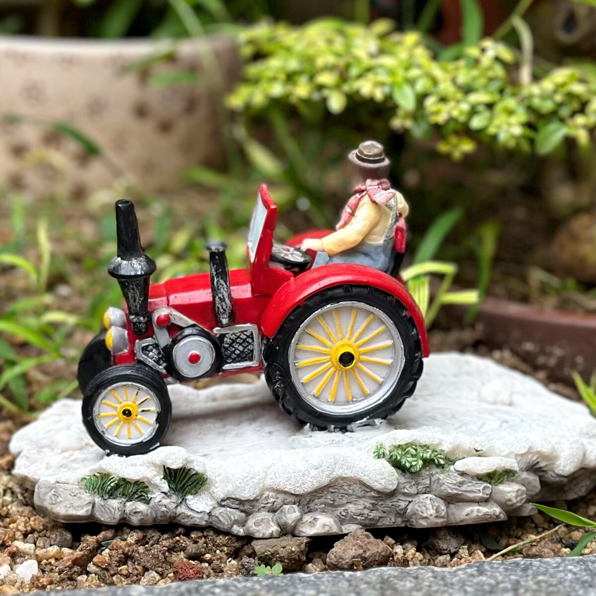 持续瓷生 出口订单树脂做旧红色拖拉机汽车写实场景摆件工艺品