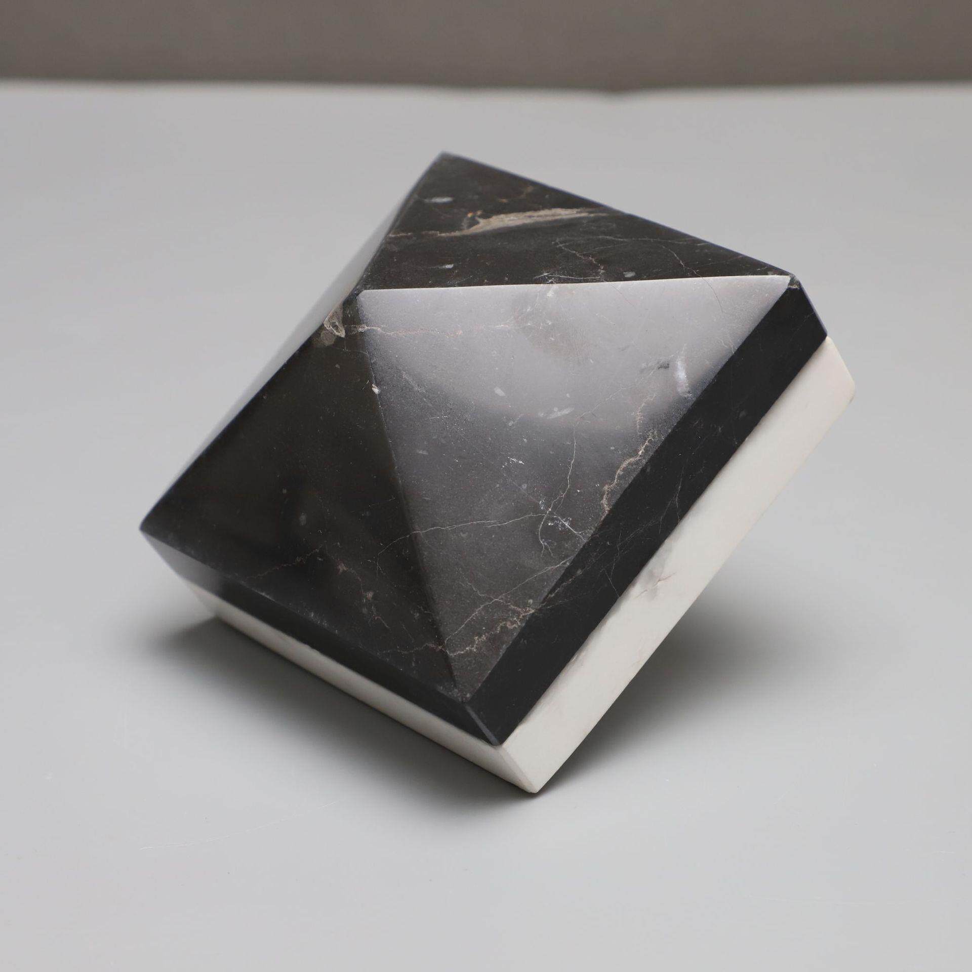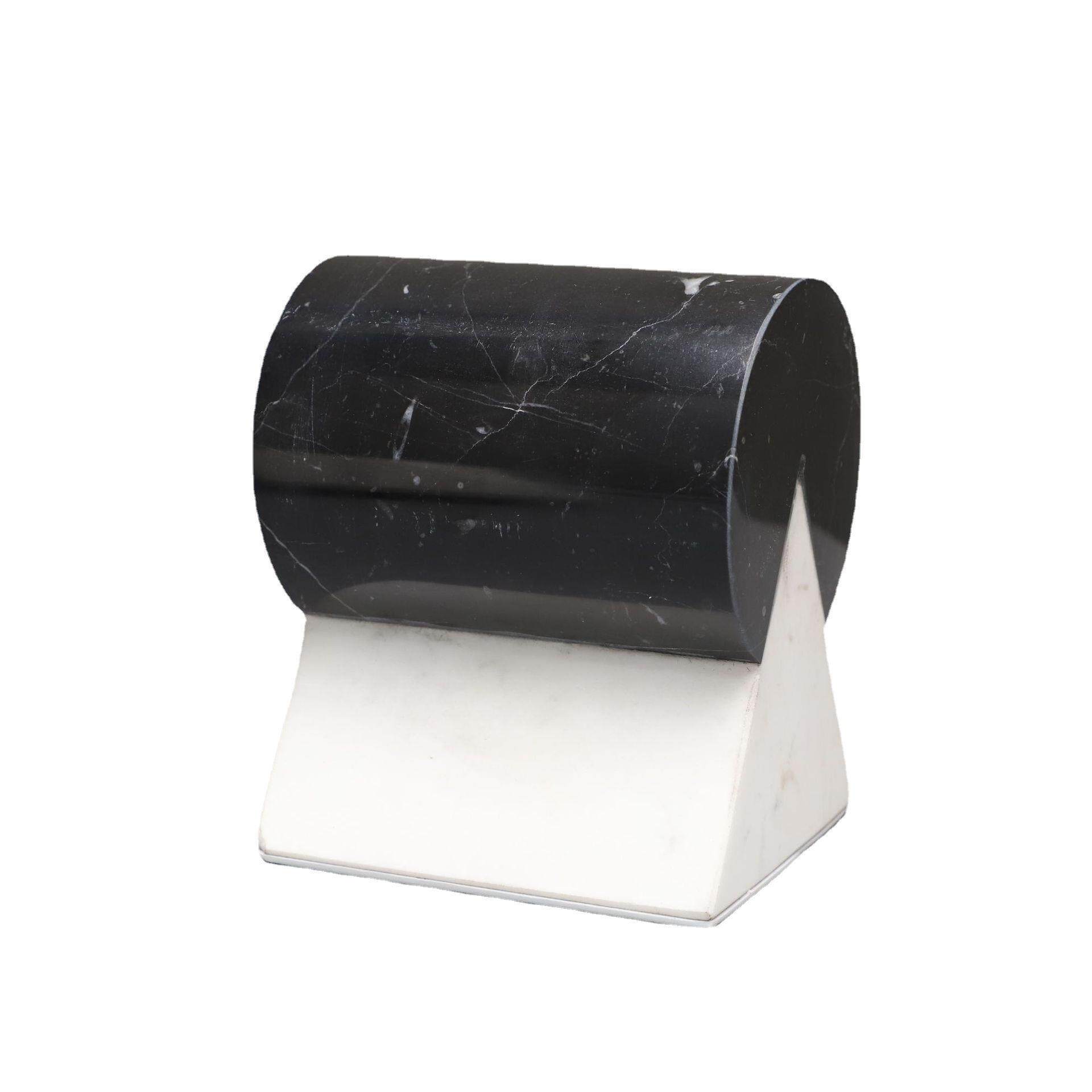 新中式黑白色大理石拼接摆件样板房售楼部卧室书房桌面软装饰品