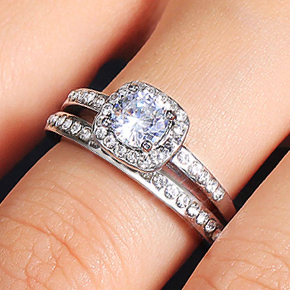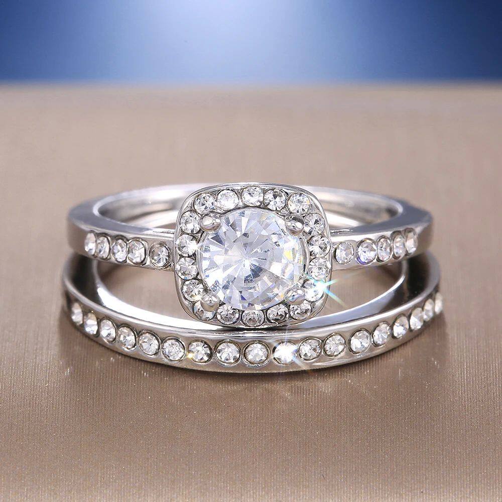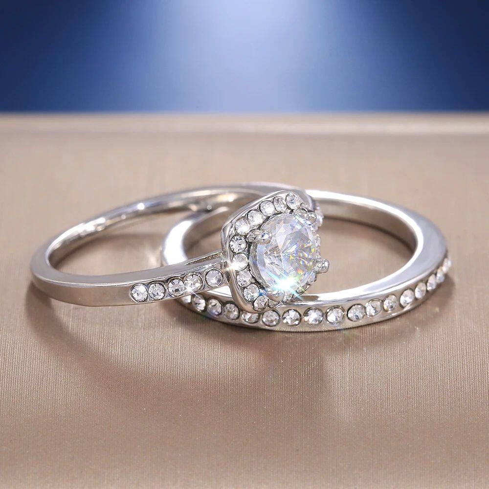 2PC Bridal Ring with Round Brilliant Cubic Zircon Prong Sett