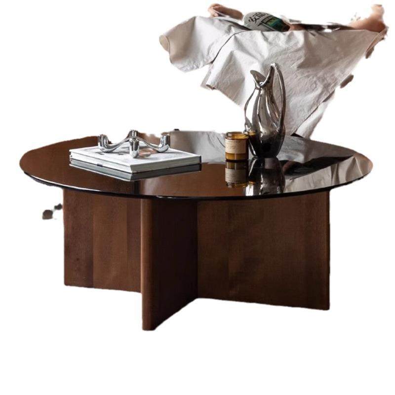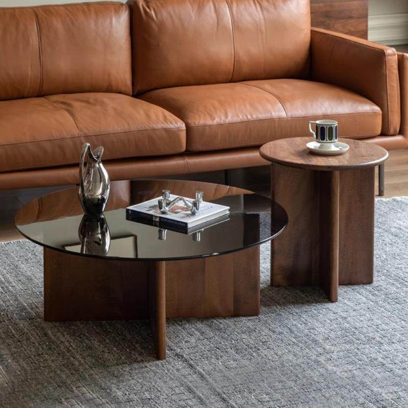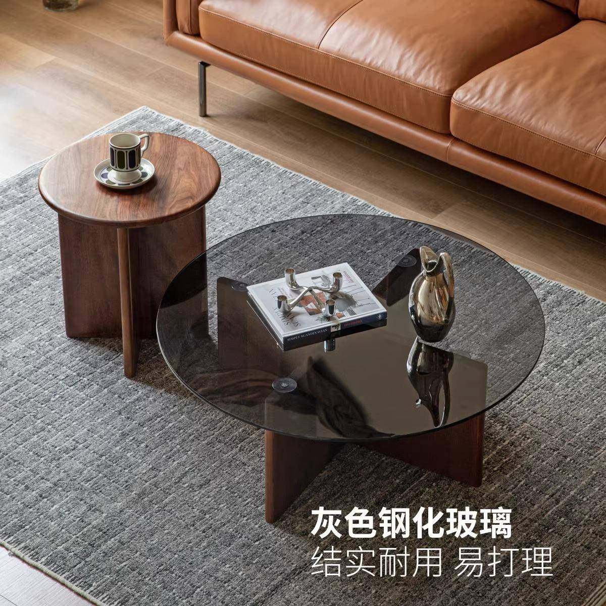 实木茶几客厅家用现代简约黑胡桃木2024新款小户型圆形小茶桌组合