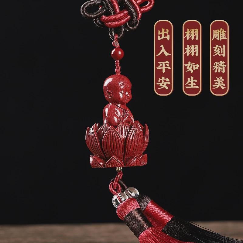 朱砂莲花汽车挂件紫金砂品吊坠挂饰童子祝福车子上挂饰