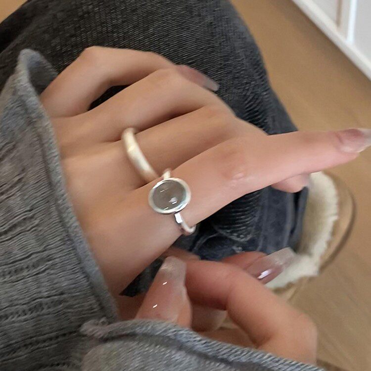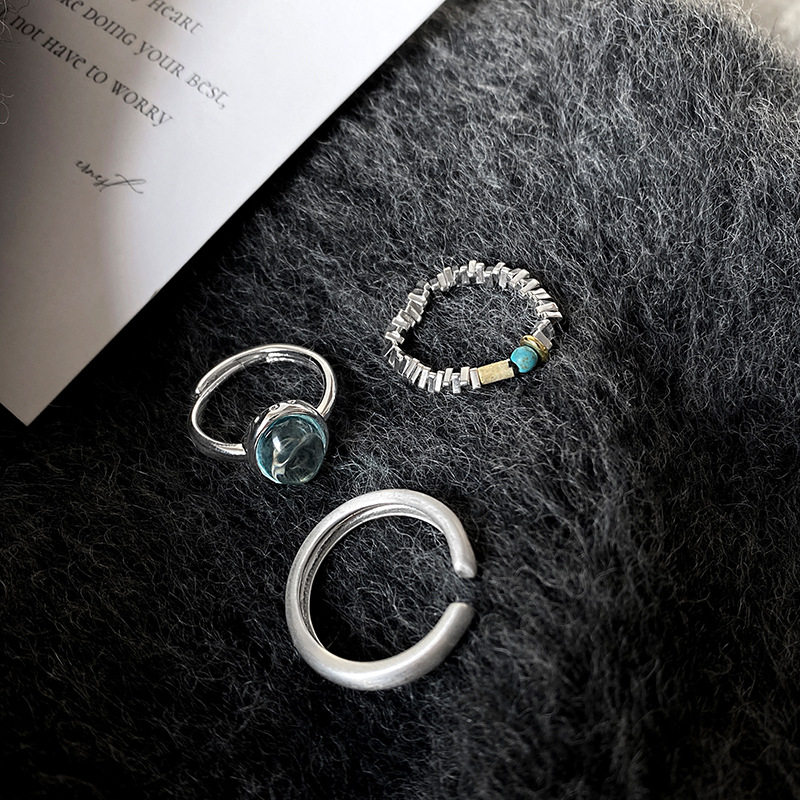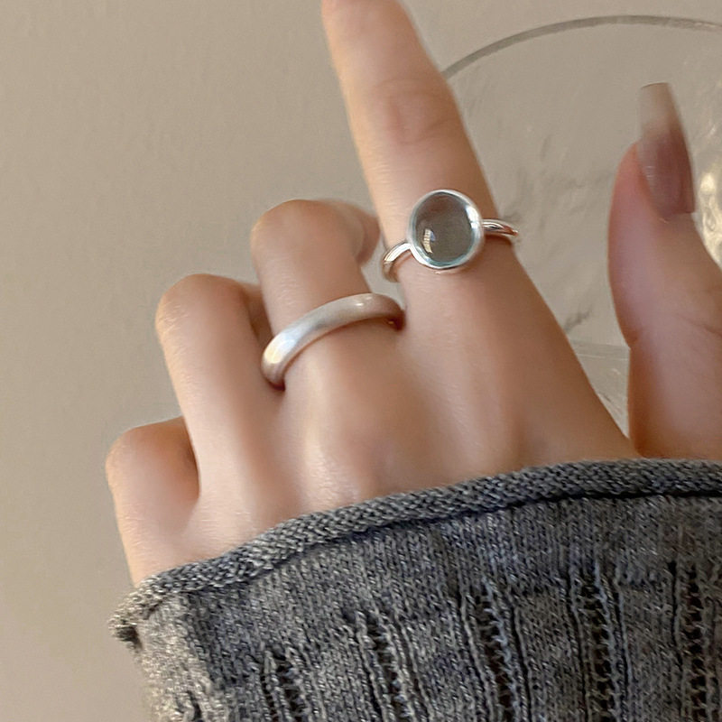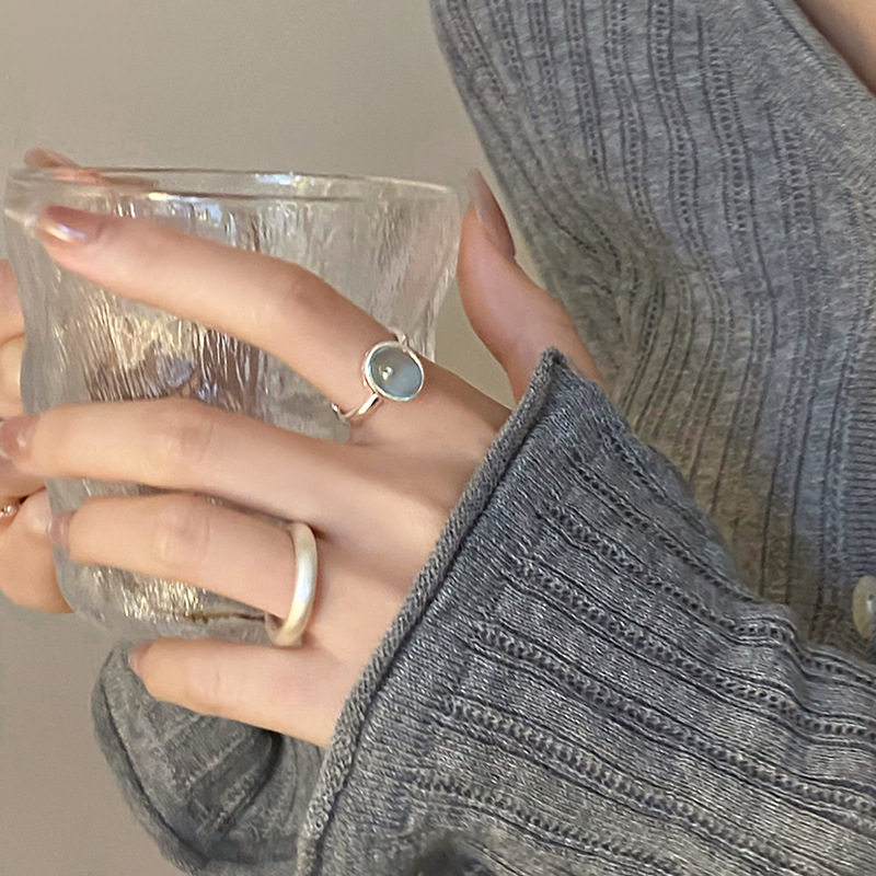 甜酷蓝色眼泪戒指女叠戴百搭个性素圈S925镀银指环网红小众食指戒