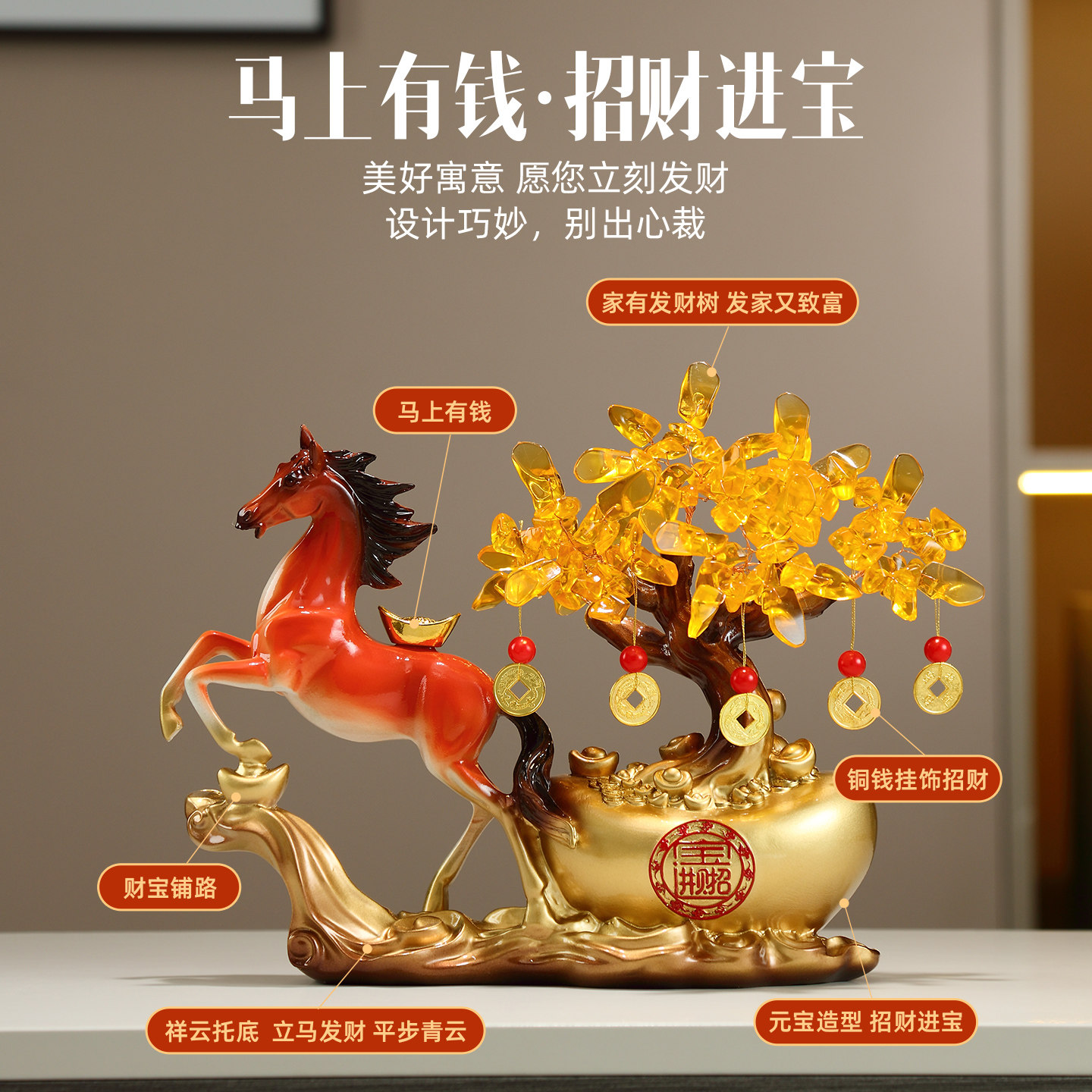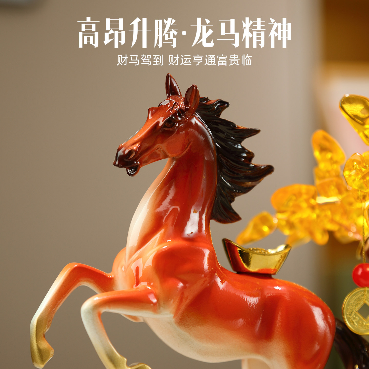 马摆件元宝发财树摆件办公室招财客厅摆件玄关装饰品开业乔迁礼物