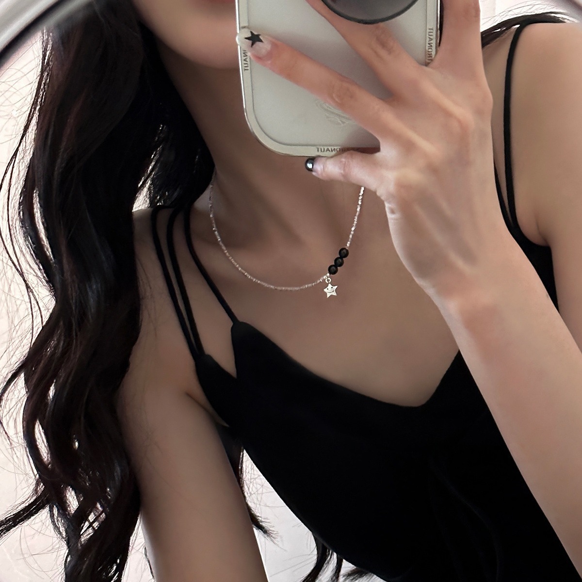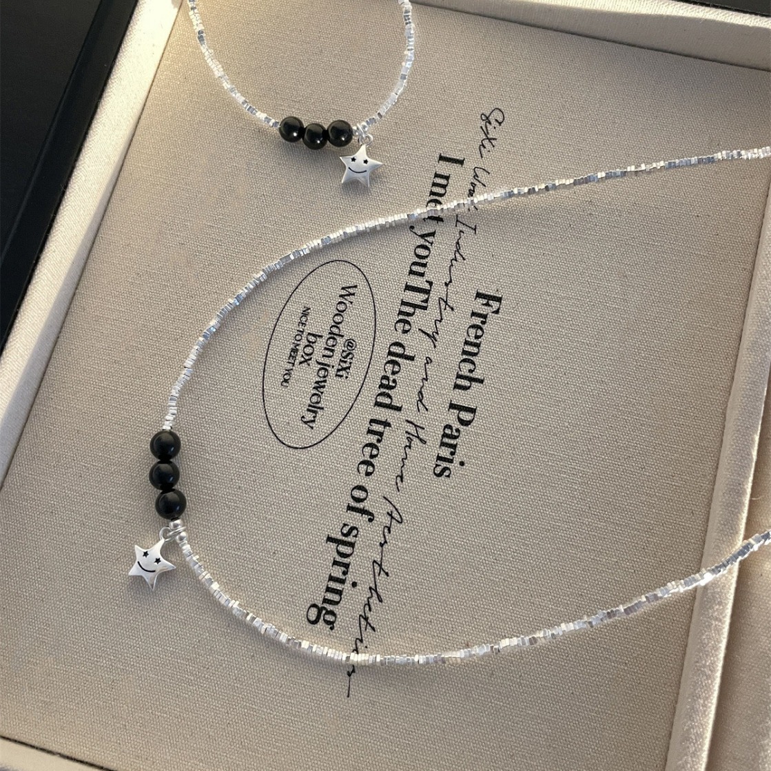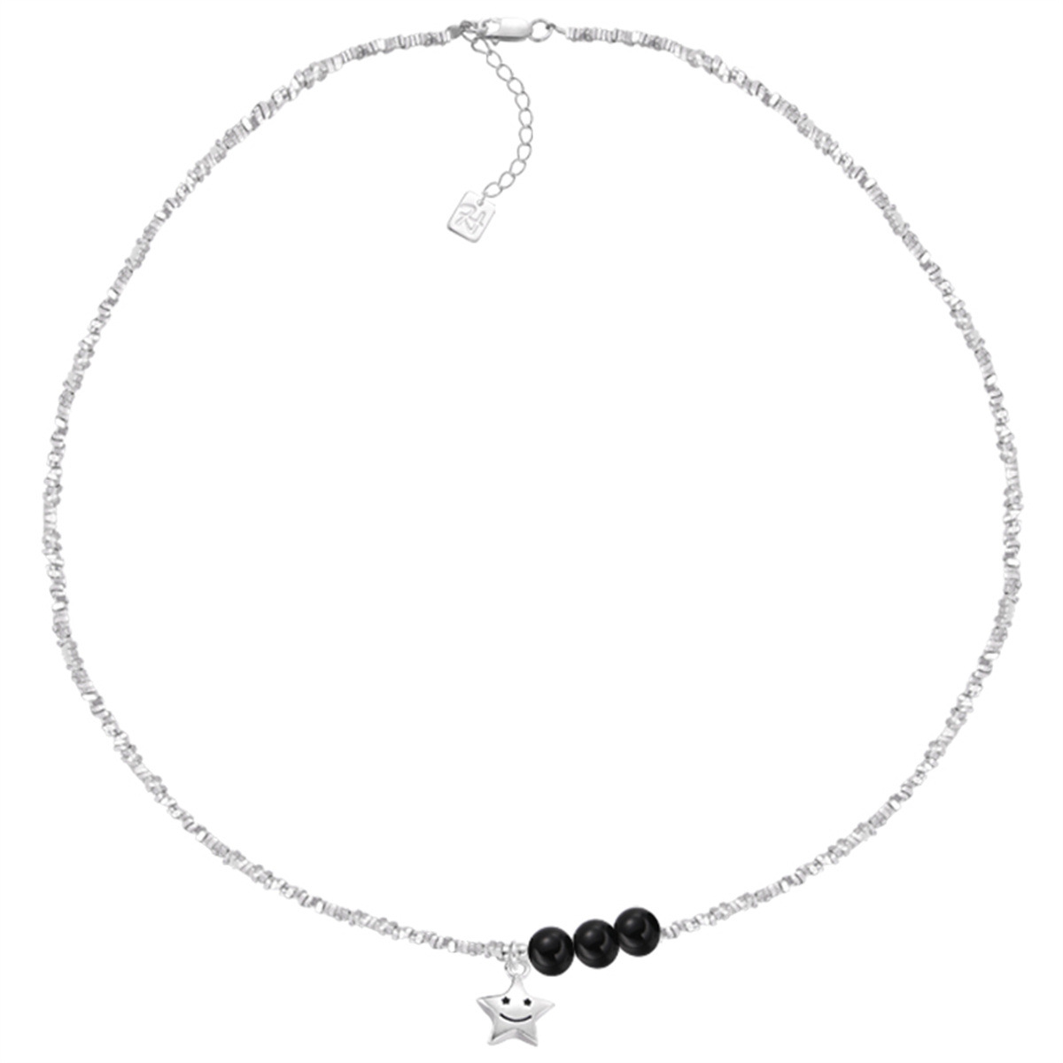 925纯银笑脸星星项链轻奢小众氧化石锁骨链精致百搭碎银子项饰
