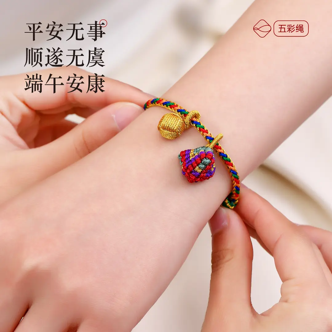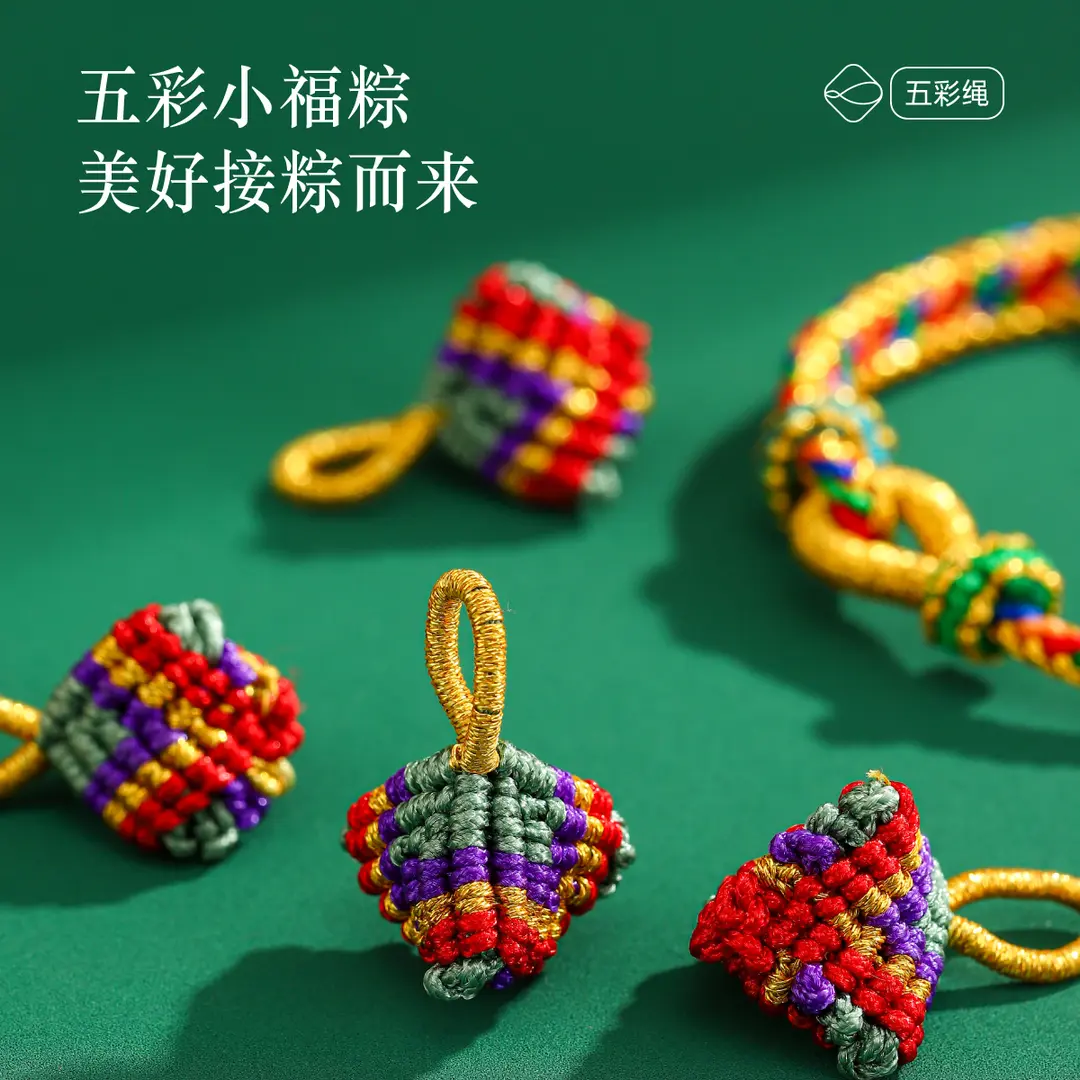 非金属锦纶手链 端午节五彩绳手工编织手链儿童小粽子手绳五色线