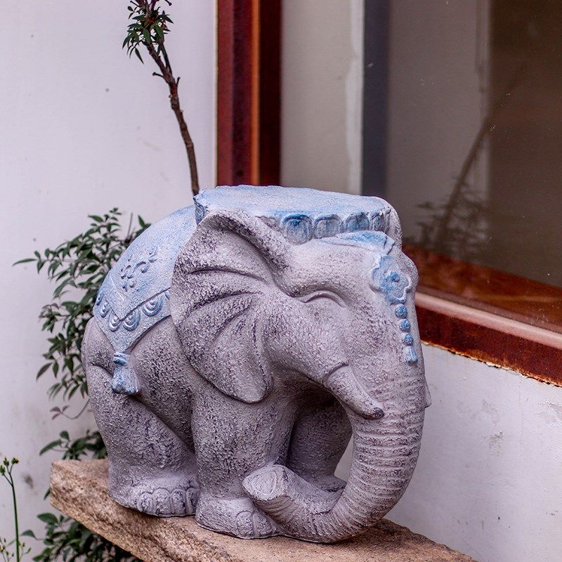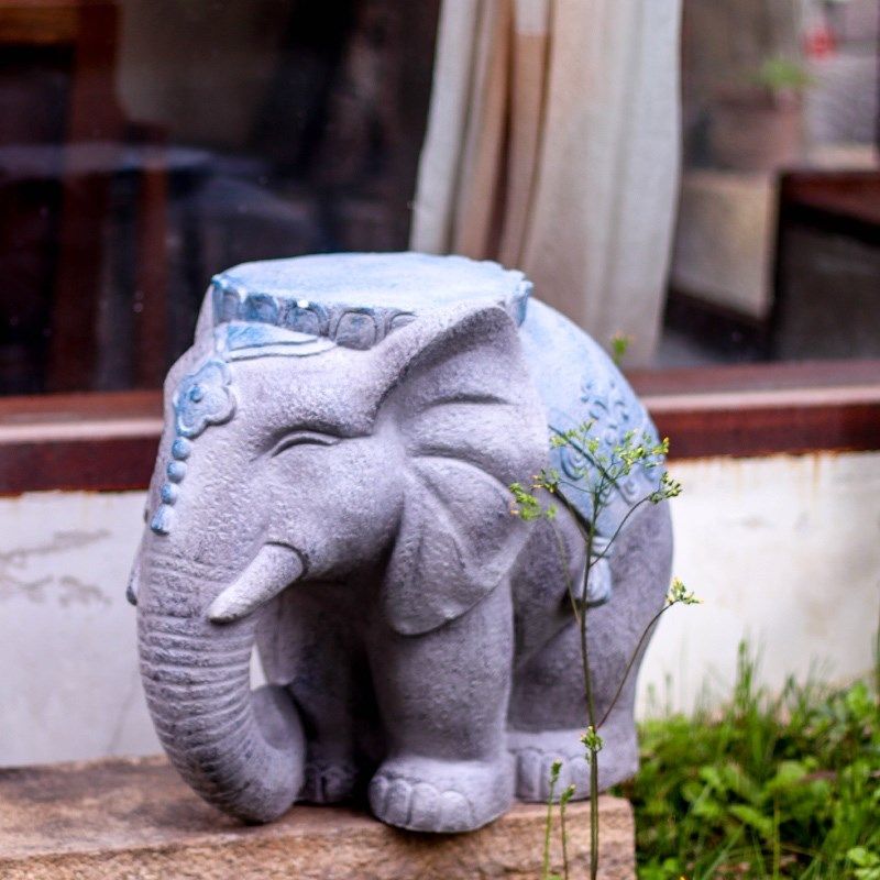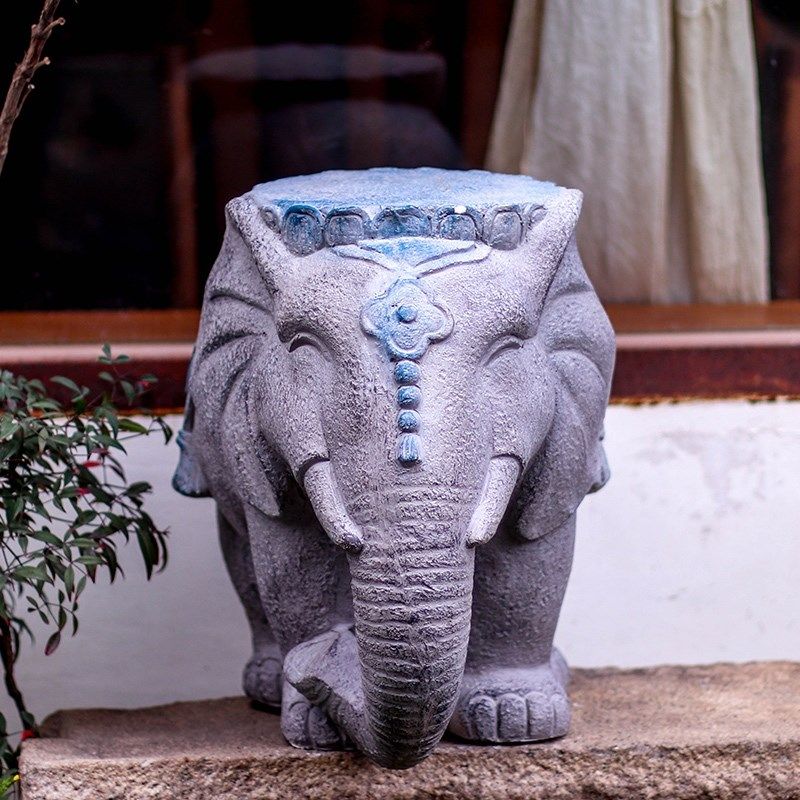 大象石墩子造型花盆架底座庭院户外花园门口装饰造景布置中式摆件