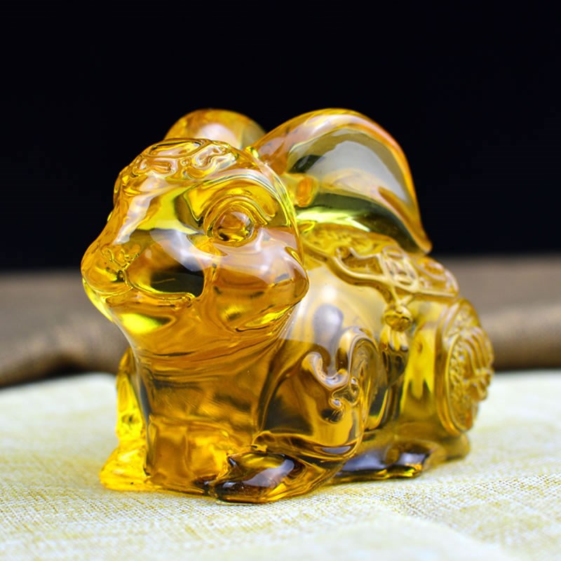 黄色水晶兔十二生肖兔生日礼物家居客厅装饰V招财纳汽车摆件