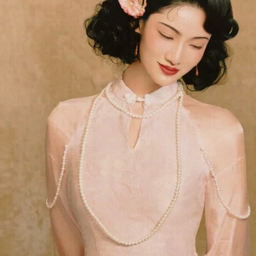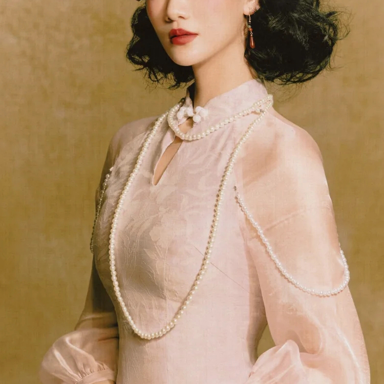 双层珍珠项链妈妈款新中式配旗袍饰品中长款颈链锁骨链子女士099