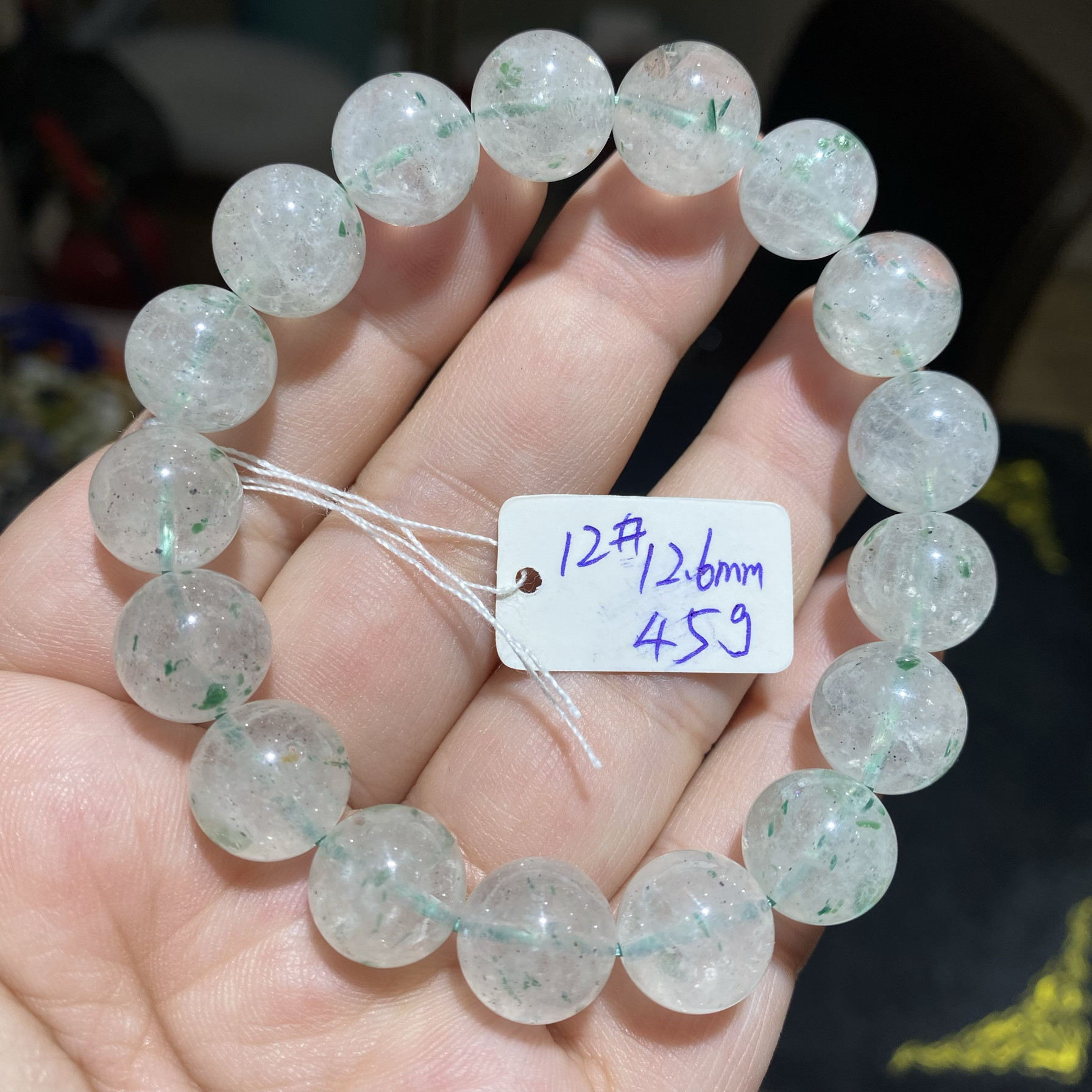 天然水晶手链绿云母绿草莓晶云母片绿水晶男女款饰品手串特价啦
