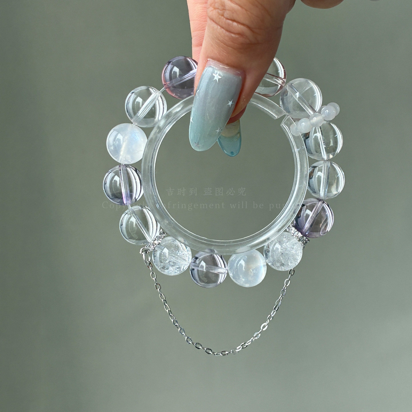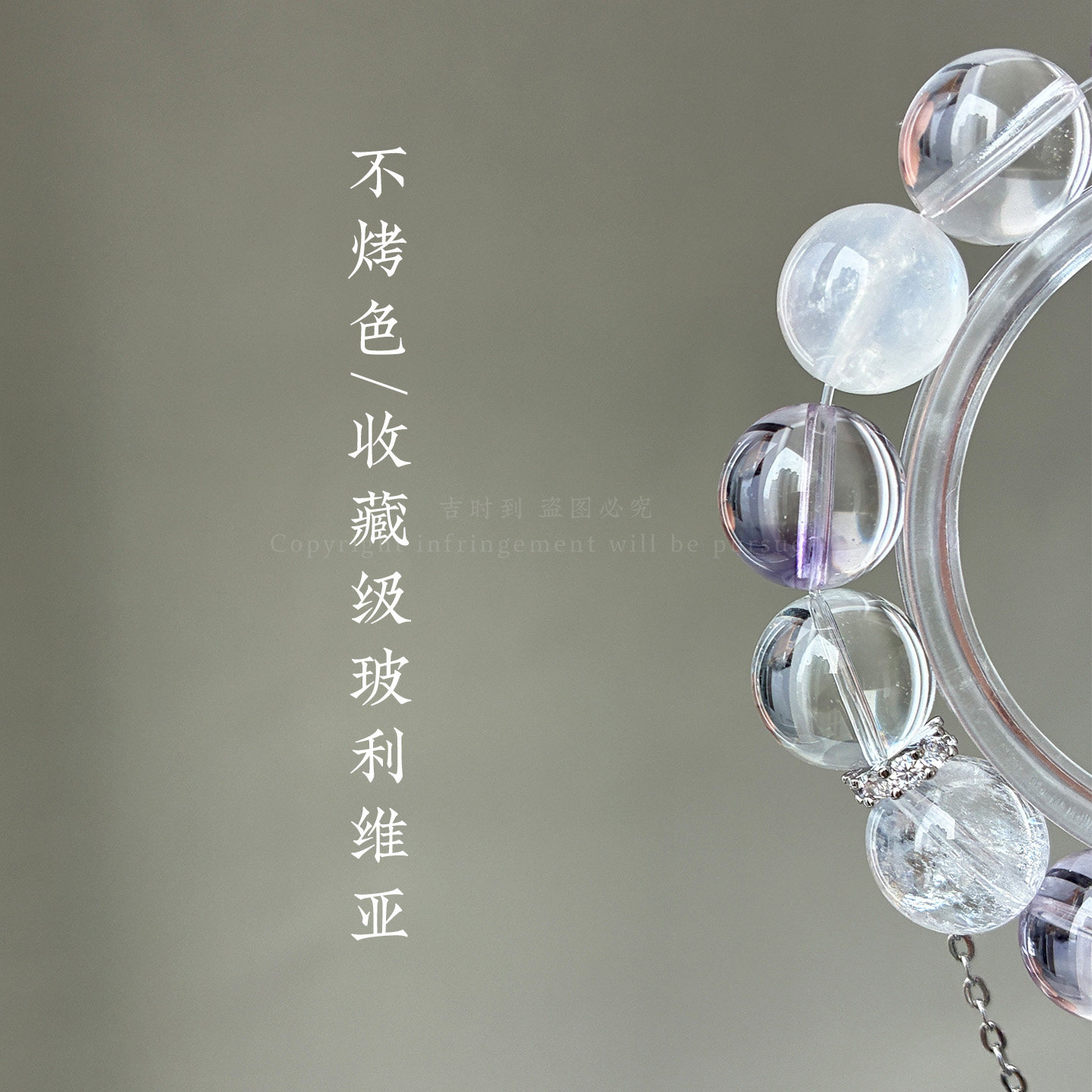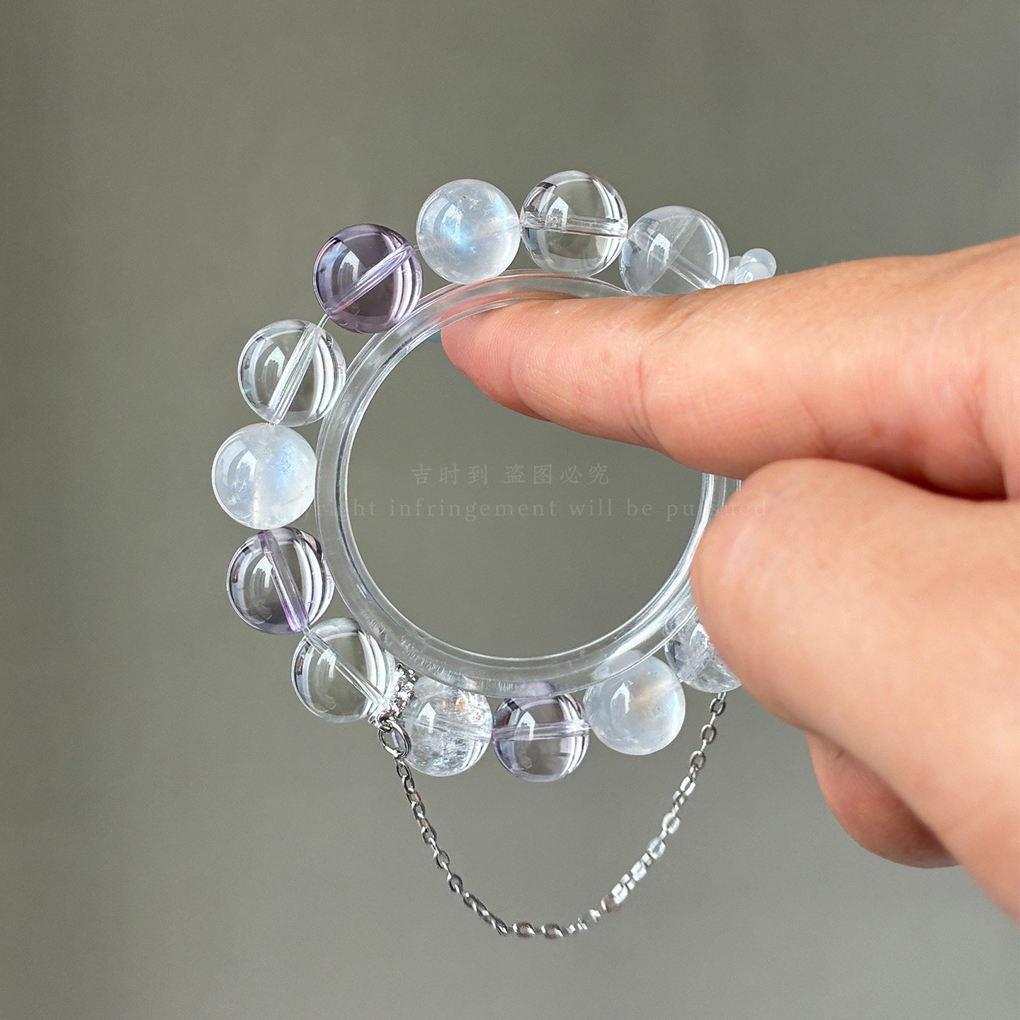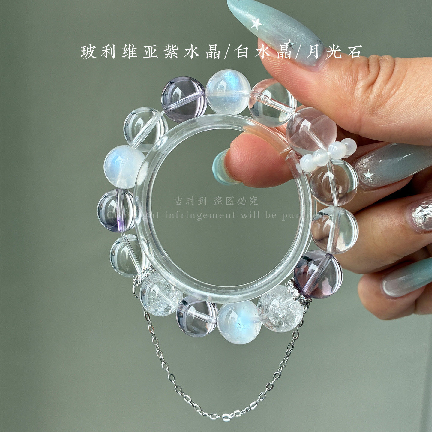 原创玻利维亚紫水晶手链设计款月光石白水晶白阿塞紫色手串疗愈