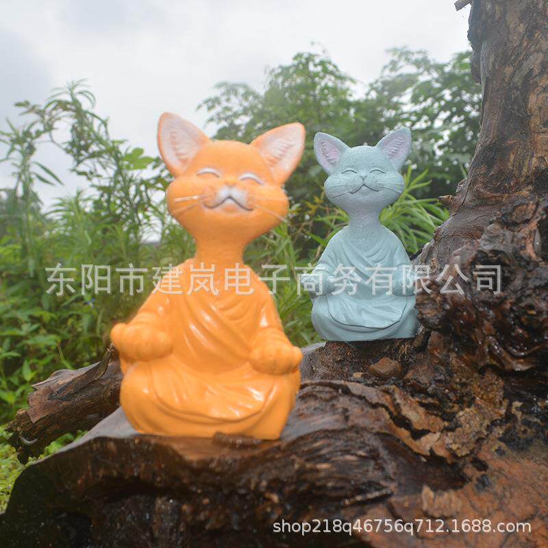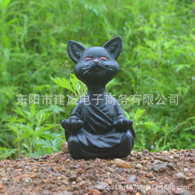 中式黑色冥想猫咪雕塑树脂工艺品办公桌花园摆件家居装饰禅意摆件
