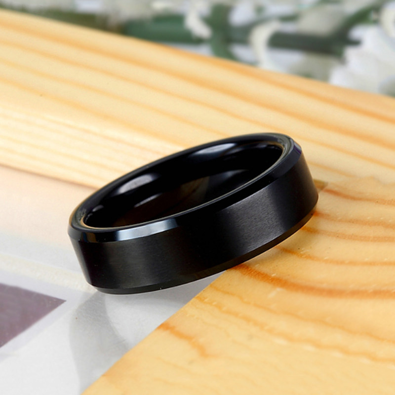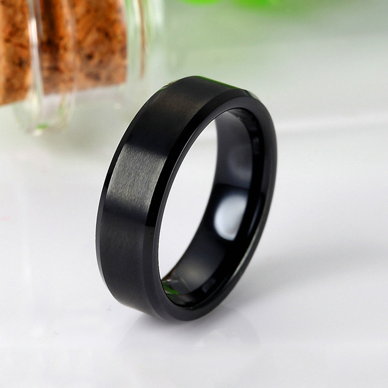 轻奢高级感黑色磨砂戒指男士指环钨金食指戒男戒个性雾面刻字定制