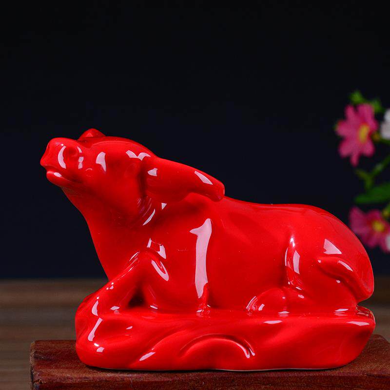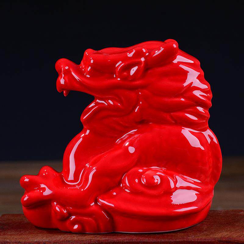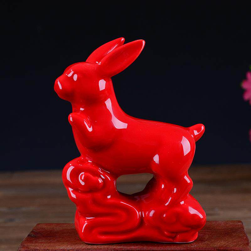高档大小号陶瓷12生肖风鼠卧牛虎兔蛇马羊猴器鸡龙狗猪摆件瓷红色