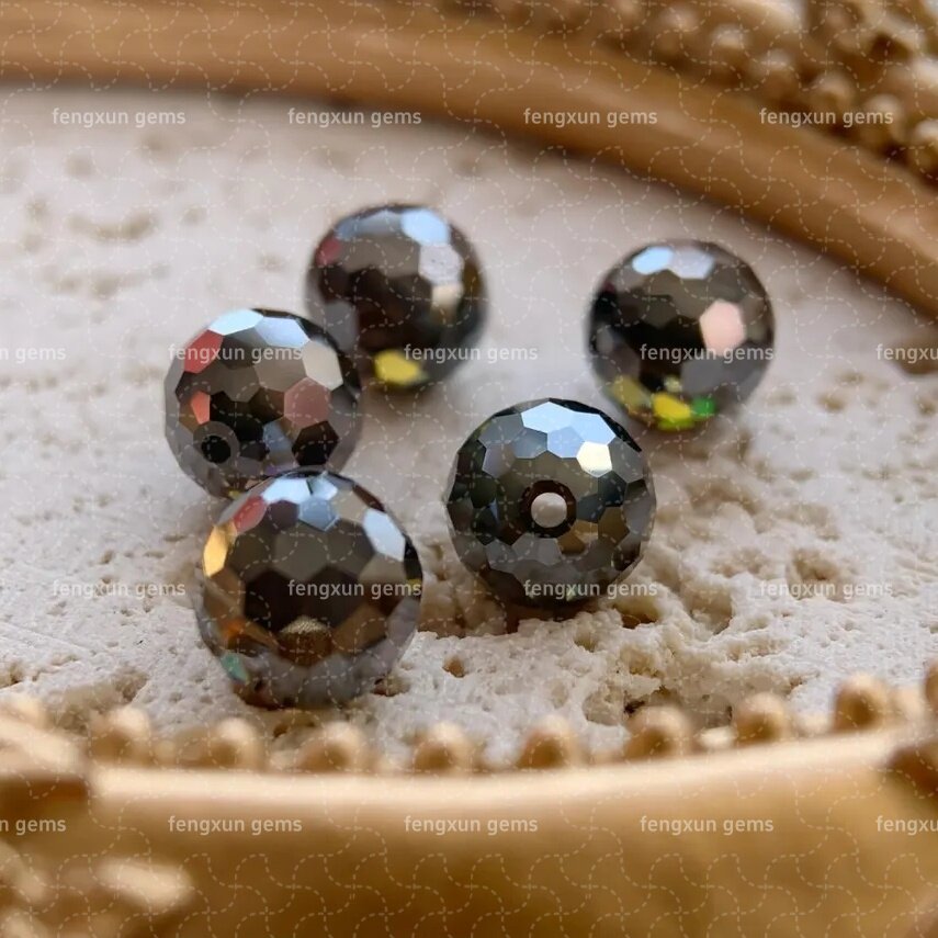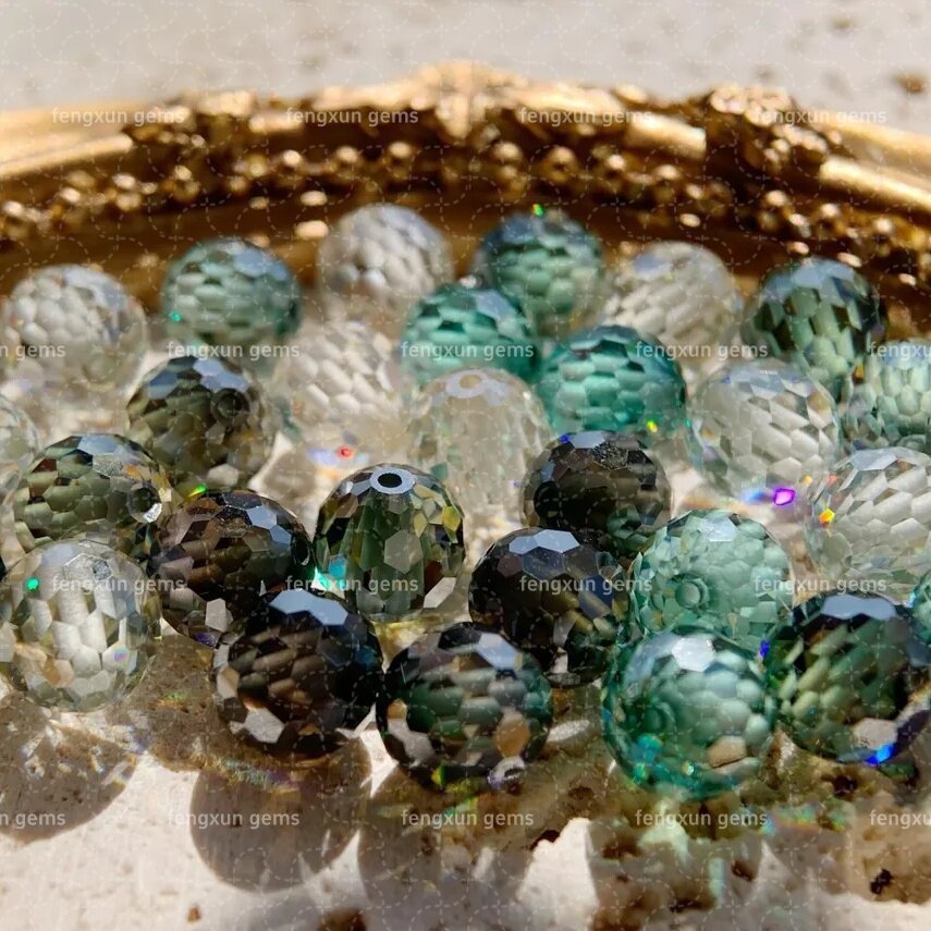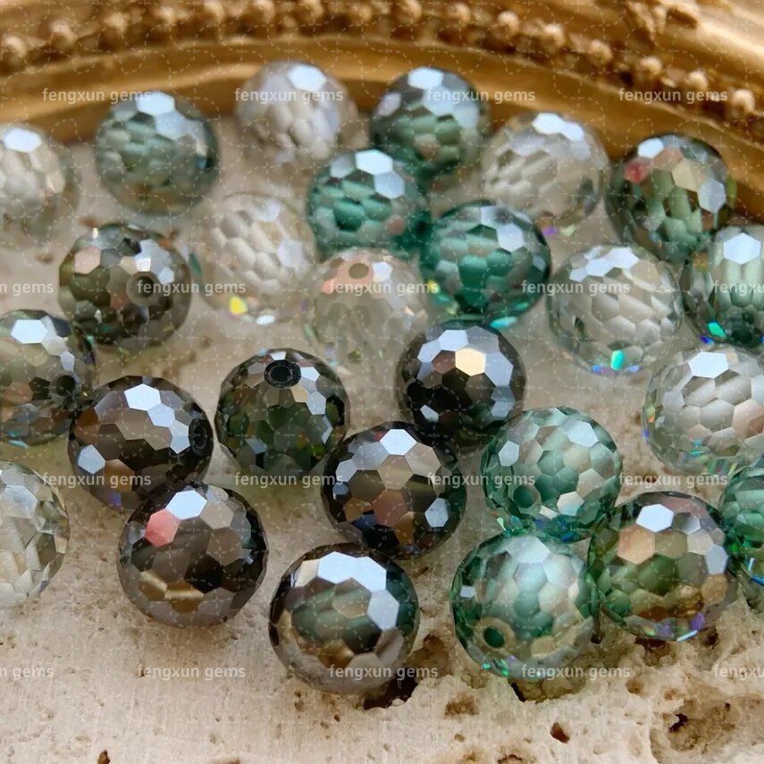 带孔3-12mm莫桑钻圆珠散珠深绿色球形串珠DIY配件球形莫桑石裸石