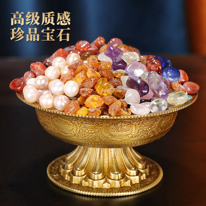 藏式供佛修曼扎盘七宝石装赞宝瓶彩色天然玛瑙水晶珍珠宝石大小号