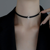 黑色纯银chocker项链女小众设计感月亮吊坠项圈ins简约锁骨链颈链