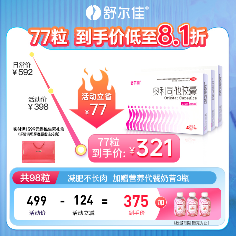 舒尔佳奥利司他胶囊减肥产品旗舰店减脂瘦身排油防胖官方正品三伏