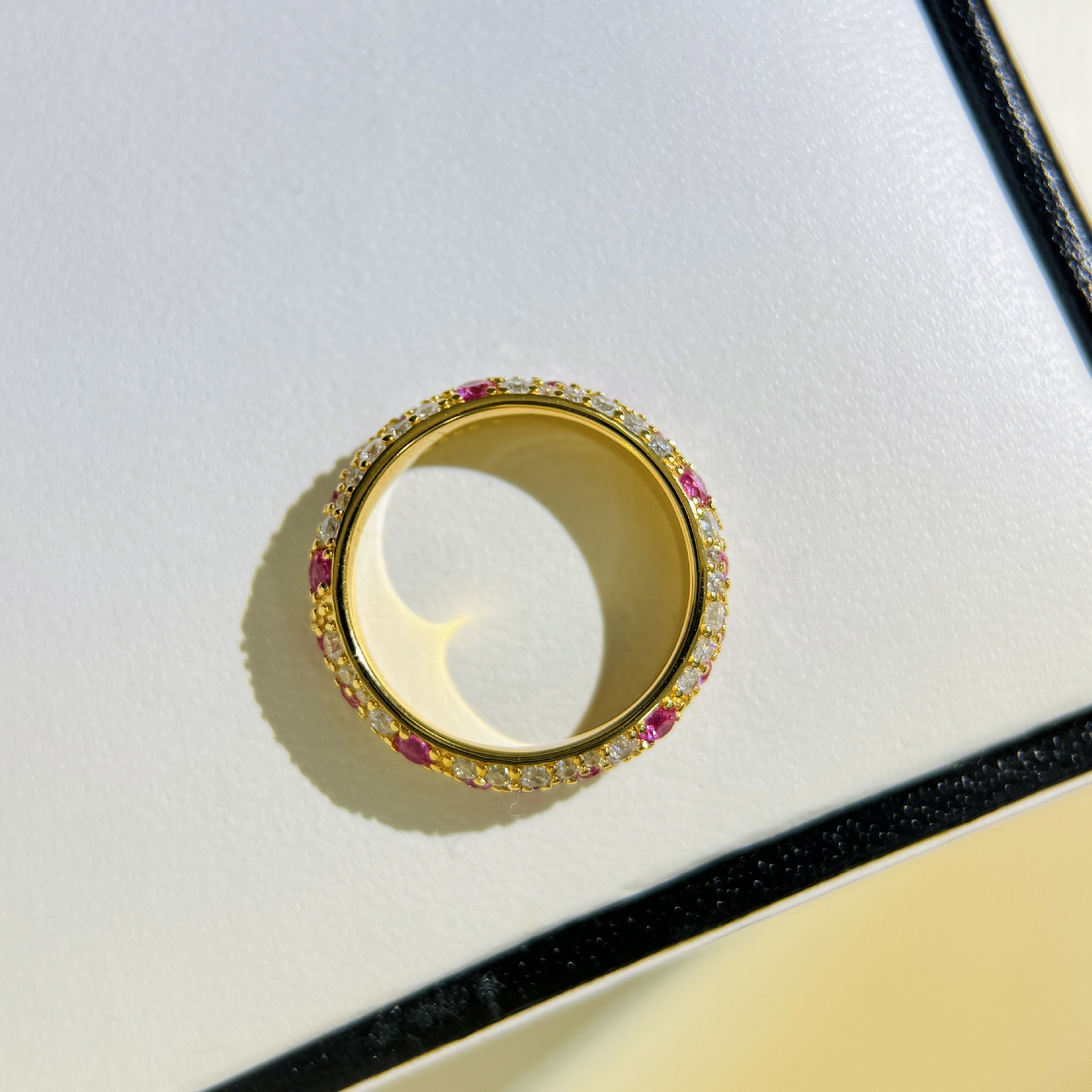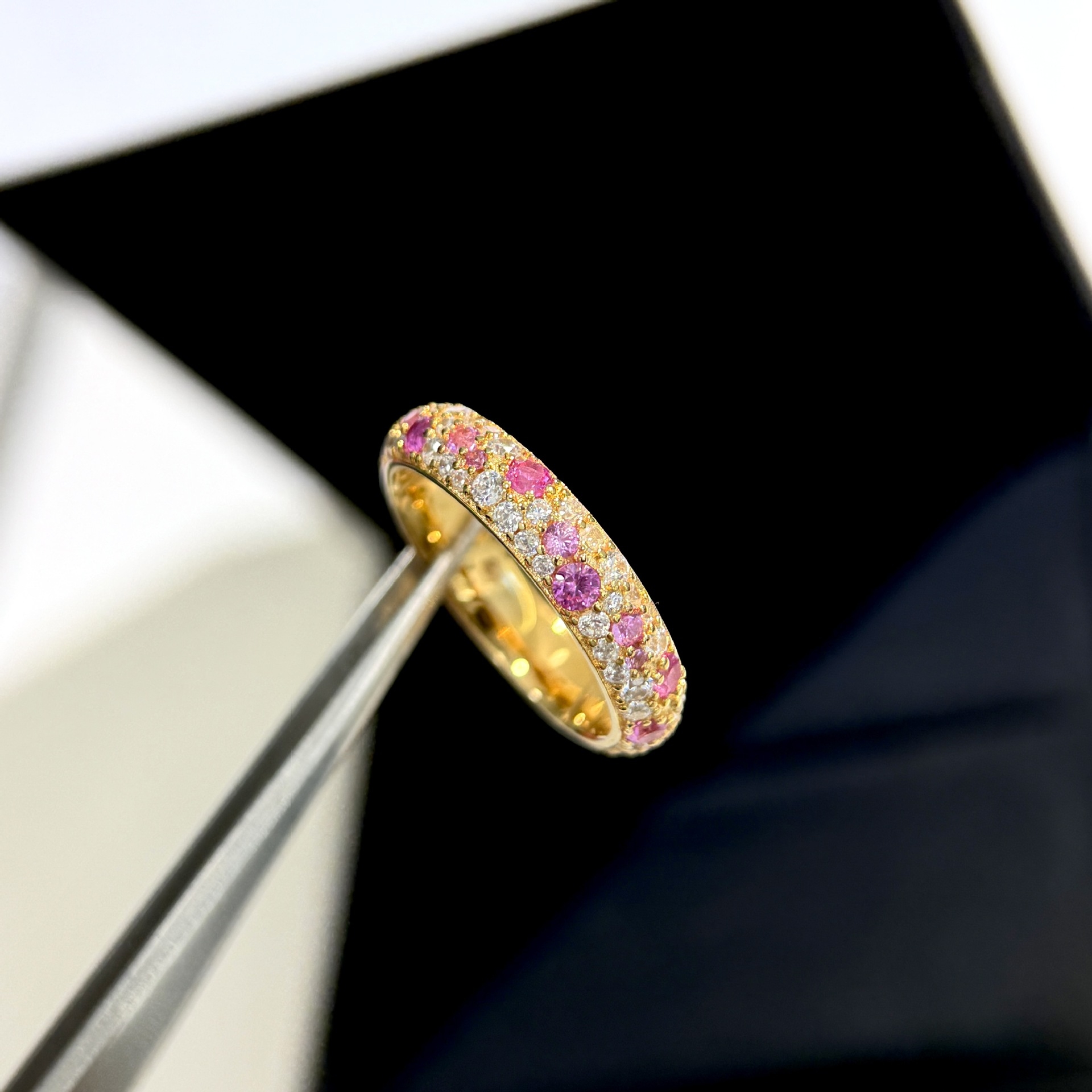 超闪925纯银满镶戒指 玫瑰金粉钻红刚玉繁星指环白细款满钻女高级