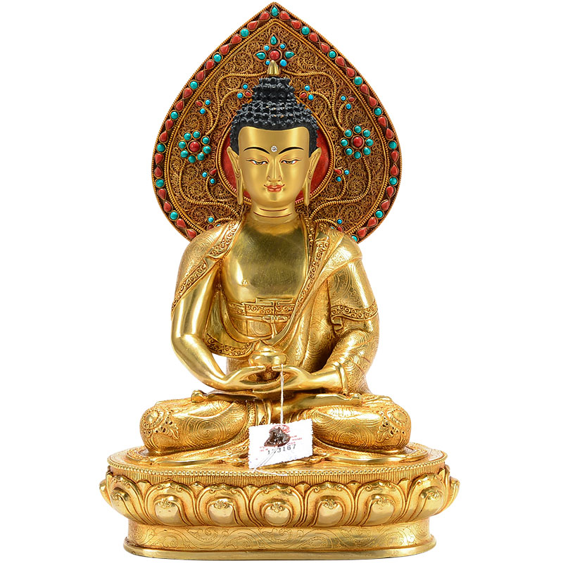 欧斯特 阿弥陀佛中式摆件 尼泊尔手工艺全鎏金雕花彩珠镶嵌三宝佛