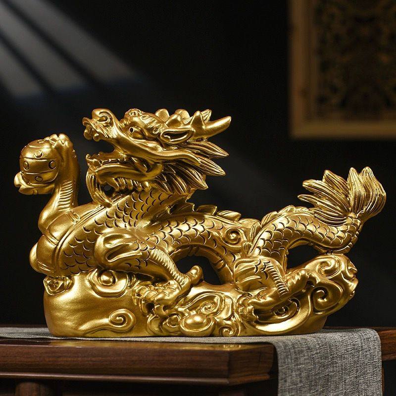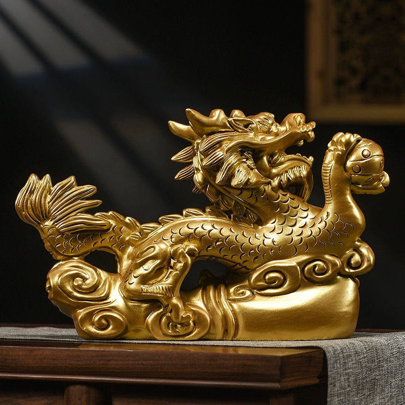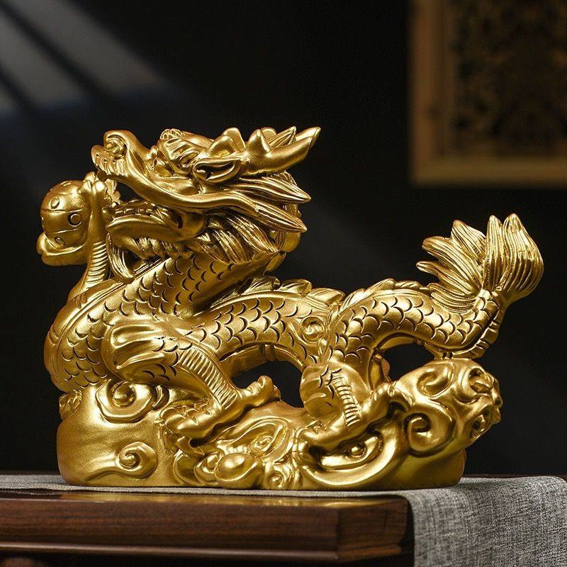 木制金龙摆件家居客厅装饰品实木质黄色神龙十二生肖木龙家用木质