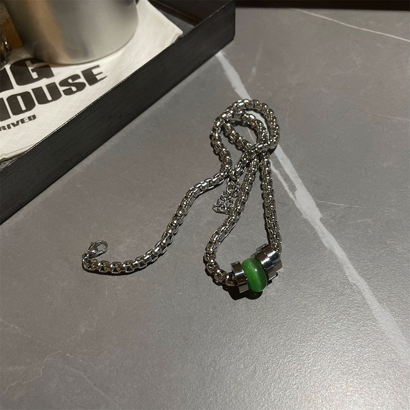 绿色珠子不掉色项链男士潮流锁骨链嘻哈冷淡风小众设计男生颈链