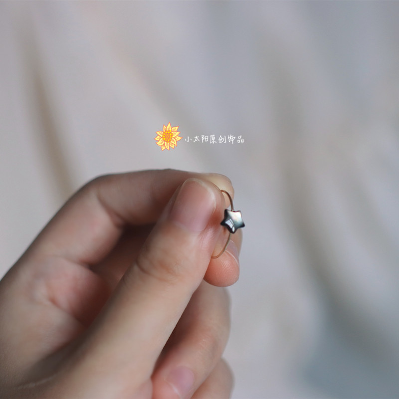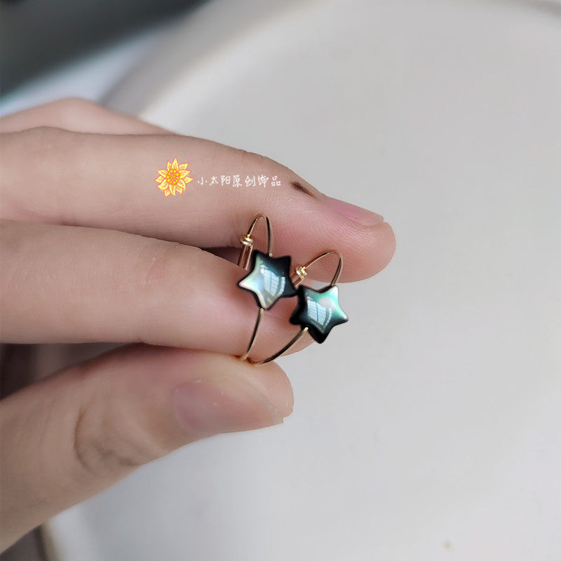极简14K包金迷你细圈冷淡风黑色五角星光戒指女小众设计ins可水洗