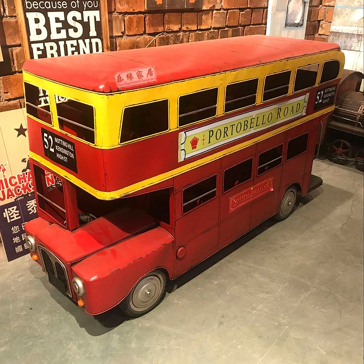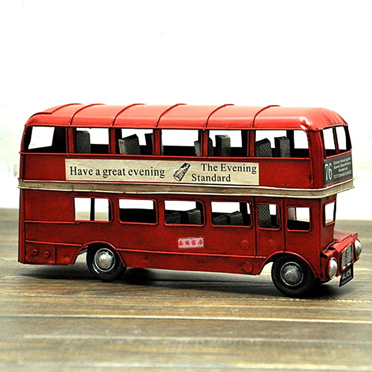 复古做旧手工伦敦巴士模型铁艺摆件 橱窗装饰品 摄影拍摄道具摆设