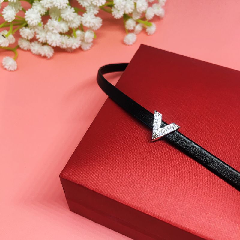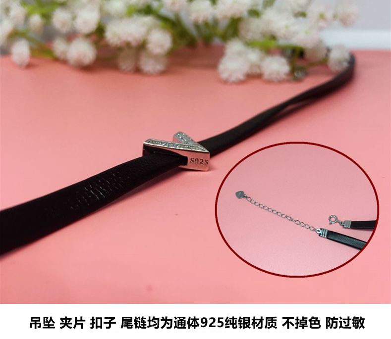 925纯银字母皮绳项链 女网红同款choker项圈颈带脖子饰品脖链简约