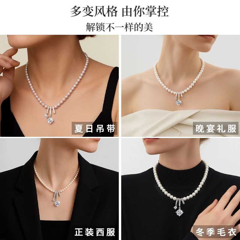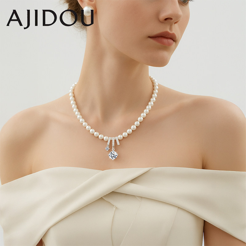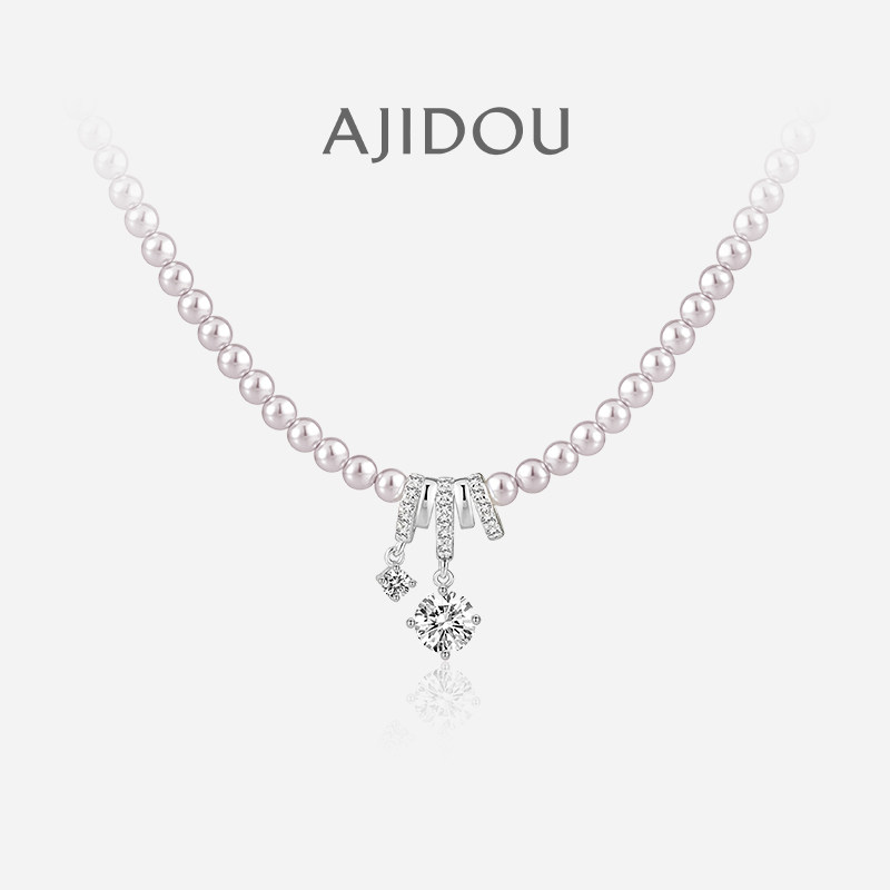 阿吉豆AJIDOU温婉珍珠项链女款吊坠轻奢小众设计锁骨链饰品毛衣链