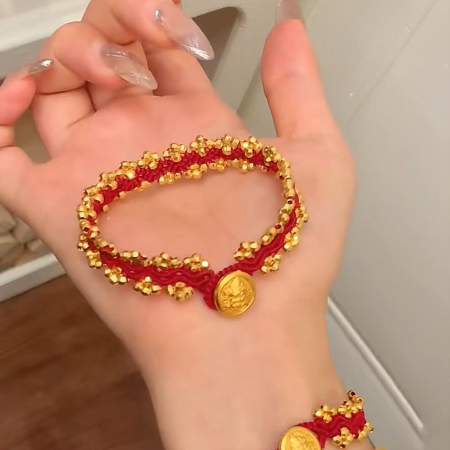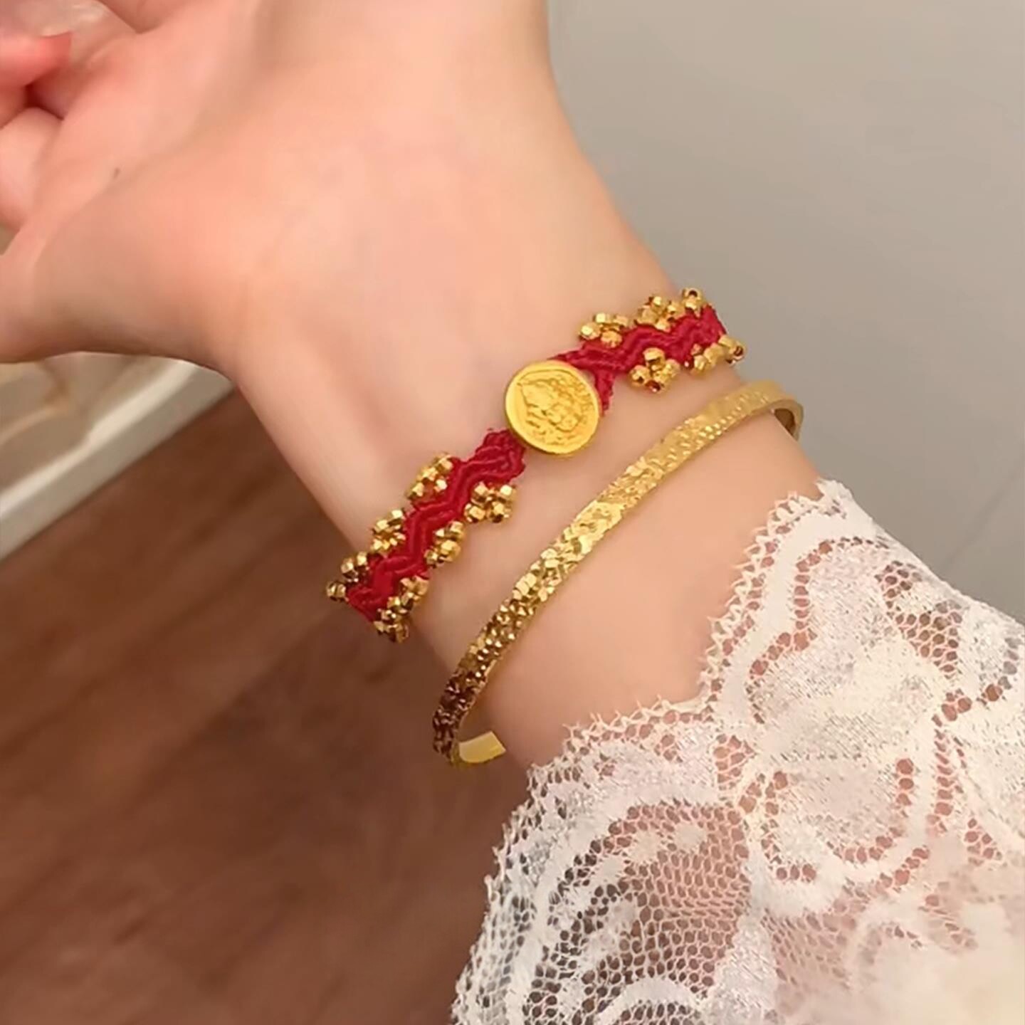鸿运绵绵!黄财神本命年红绳手链女款波浪纹红色手绳新年喜庆手饰