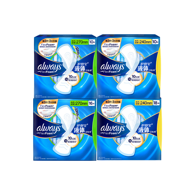 护舒宝液体卫生巾240mm270mm32片日夜用女大姨妈巾正品无感般保护