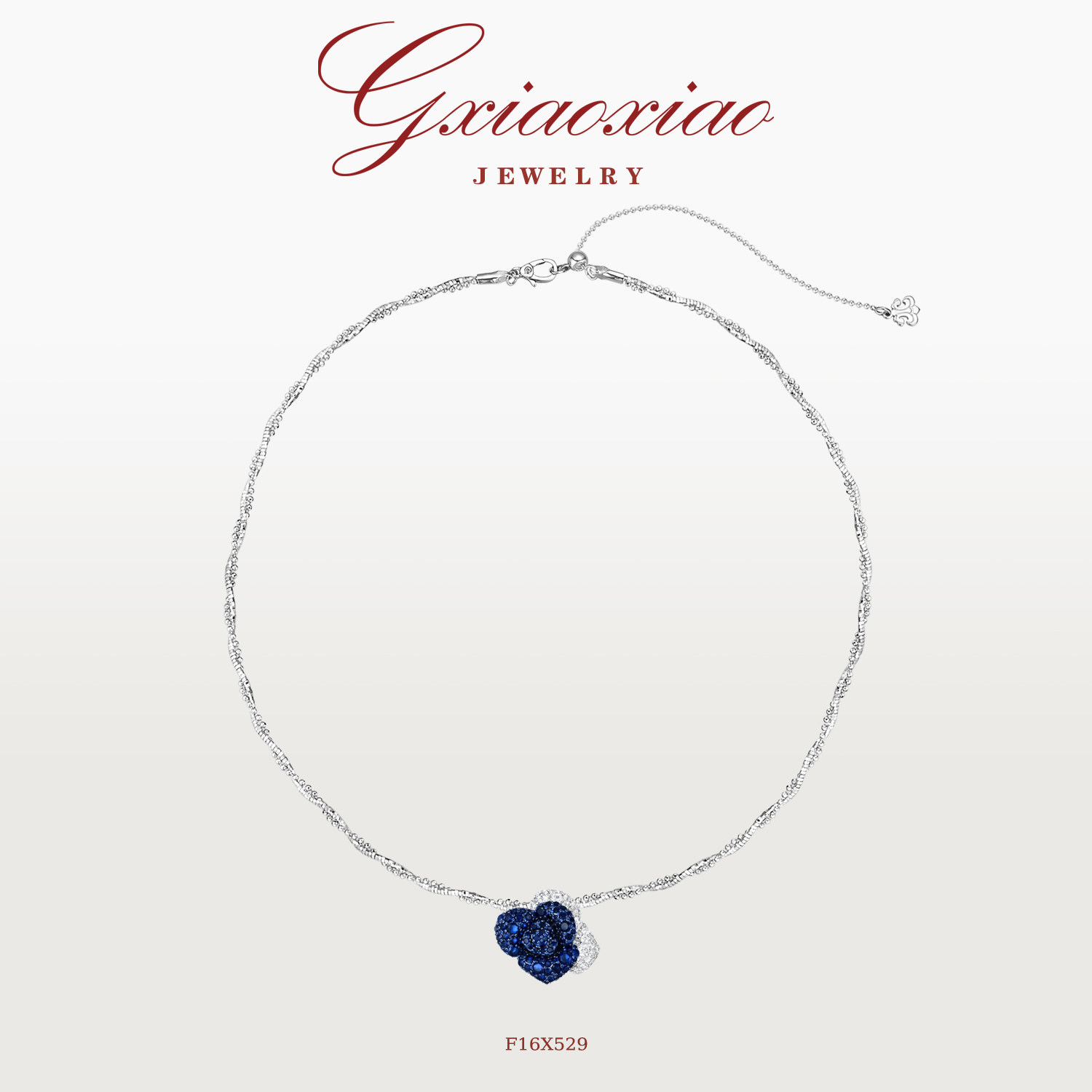 G XIAOXIAO 【蓝色妖姬】轻奢气质甜美蓝玫瑰项链 F16X529