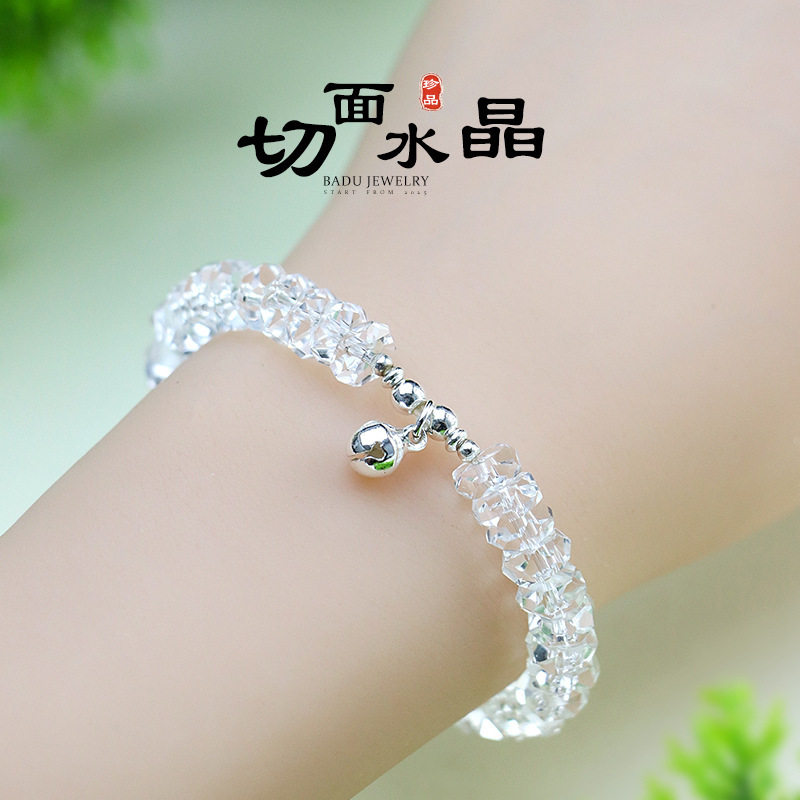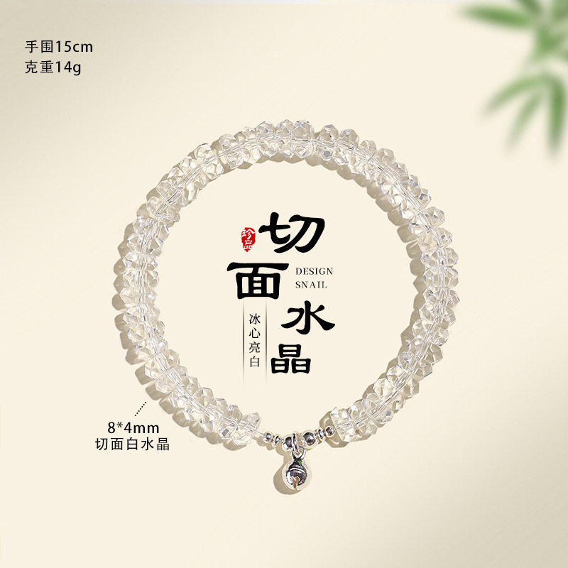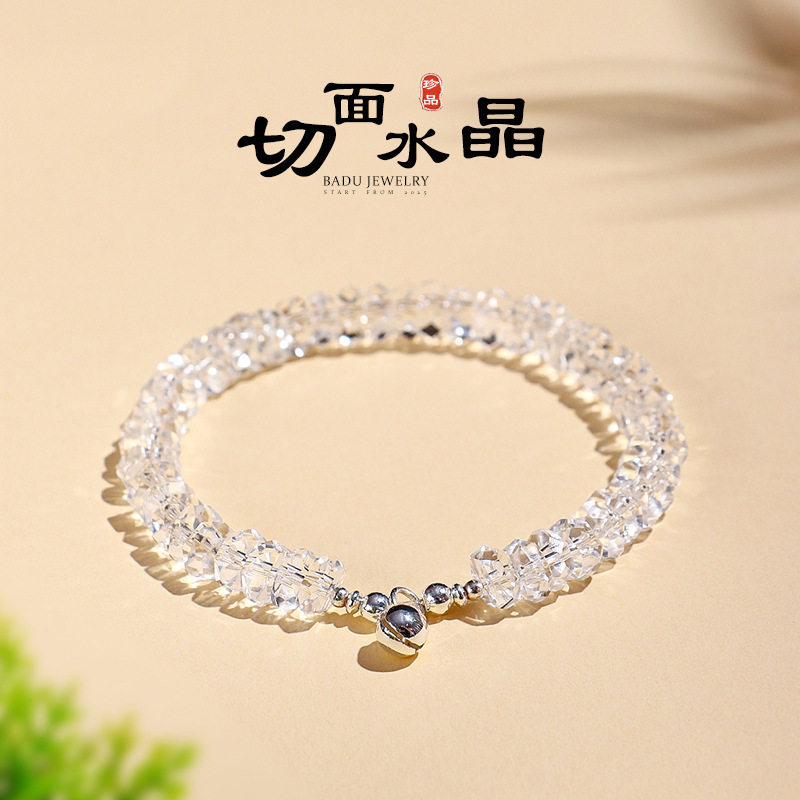 4*8mm切面白水晶串珠手链女小众感冰心亮白手串送闺蜜送朋友