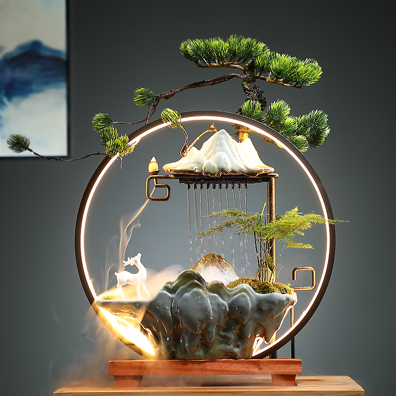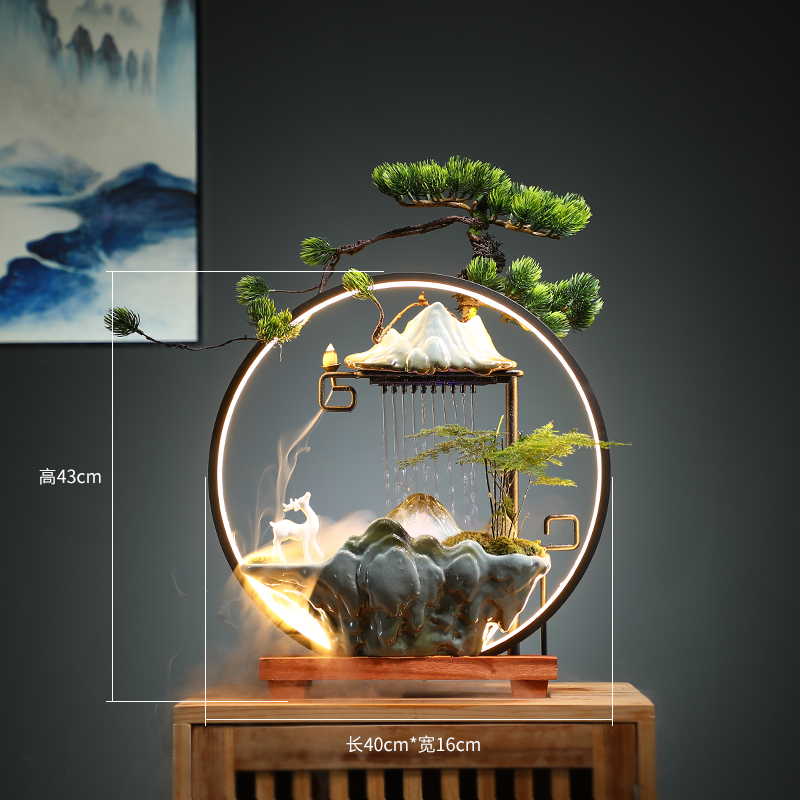创意灯圈循环流水鱼缸摆件 招财客厅玄关景观装饰乔迁开业送礼品