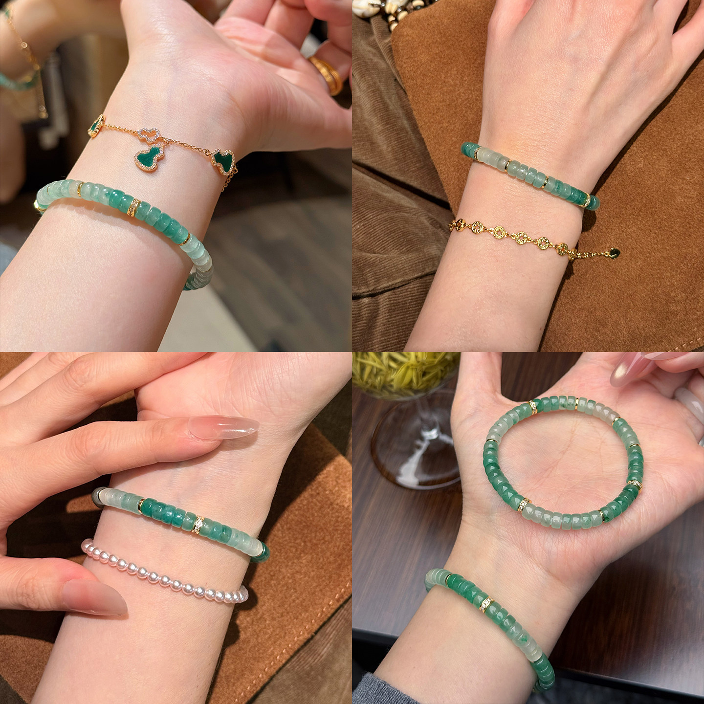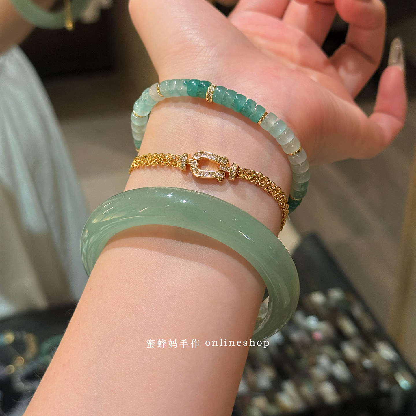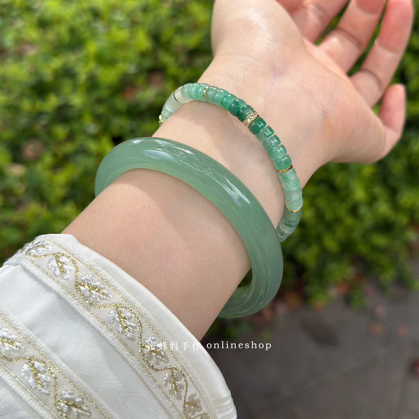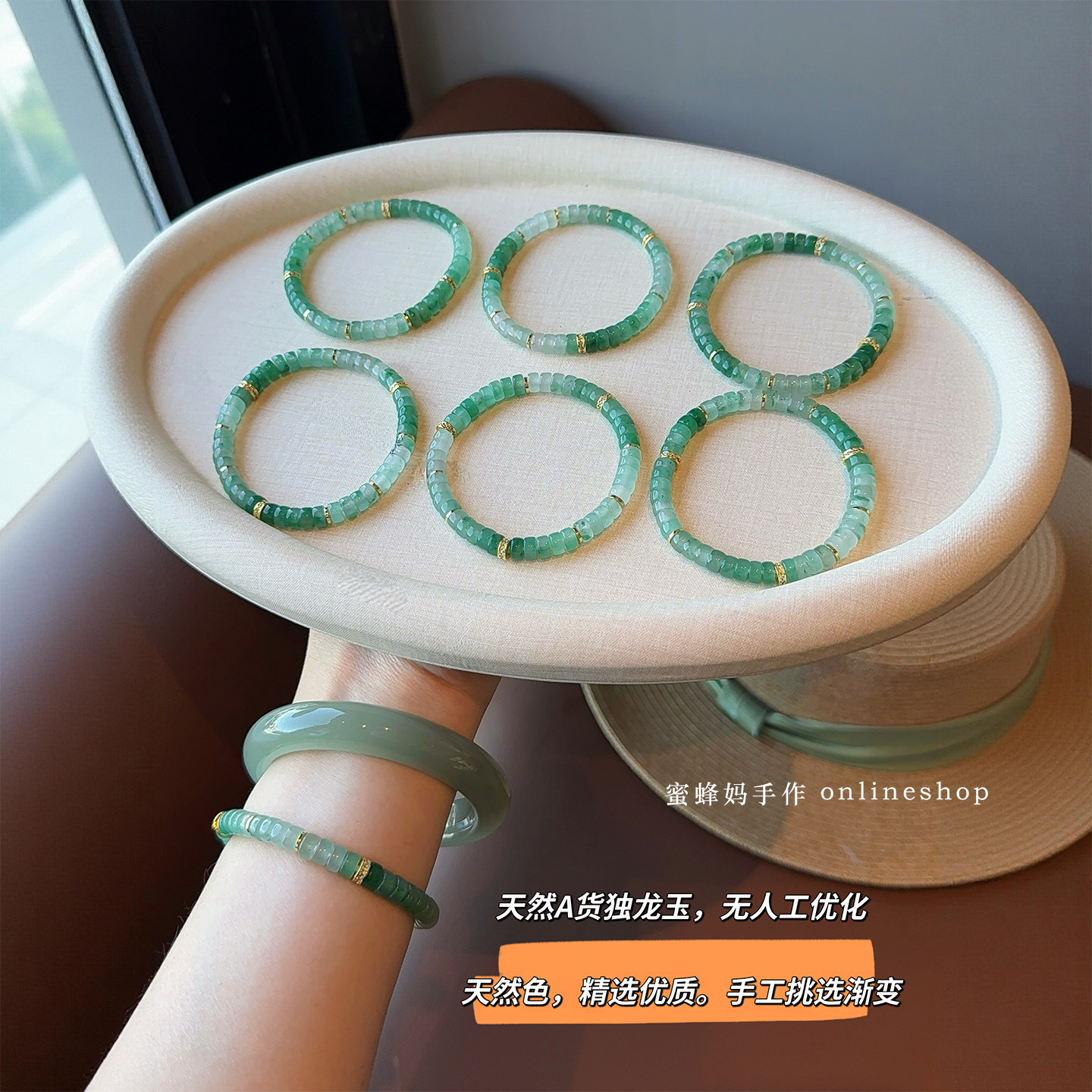 【会员八折】蜜蜂妈手作 天然非洲翠手串直切算盘珠渐变玉石手链