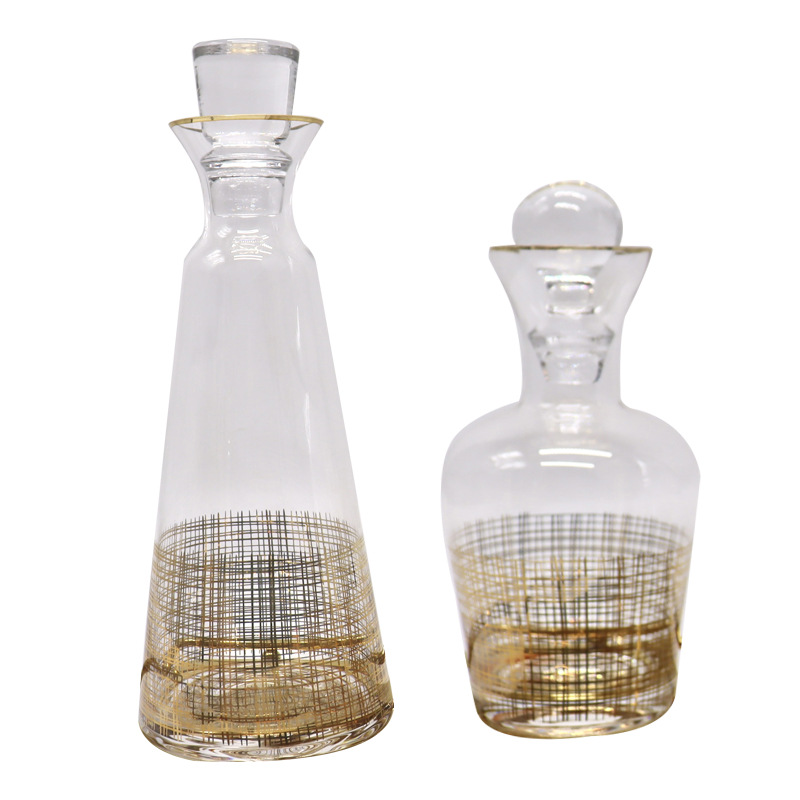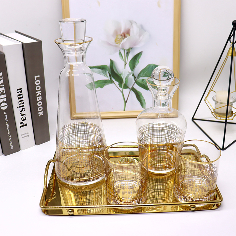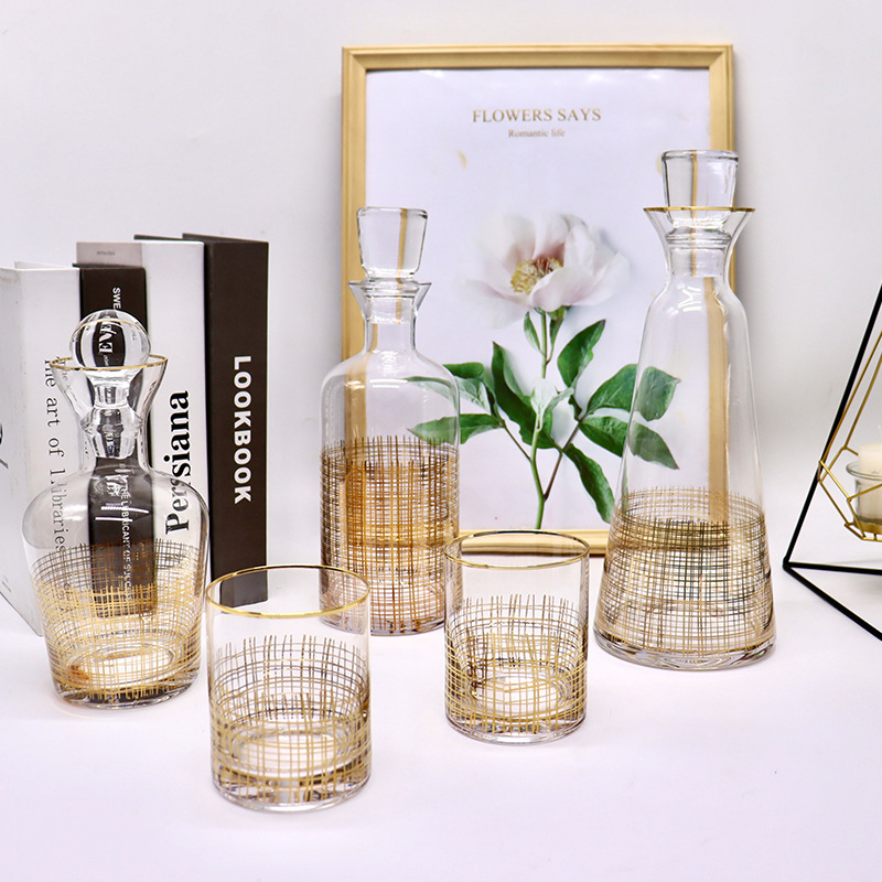 极简透明玻璃醒酒器现代风金线酒杯酒具样板房间软装饰品套装现货
