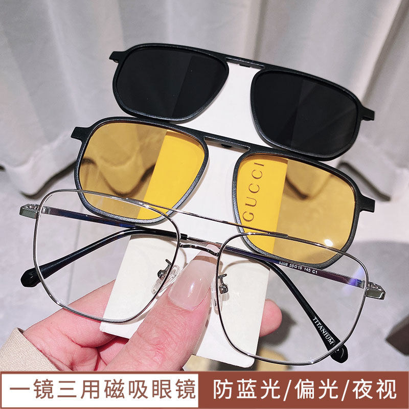 一镜三用磁吸眼镜男款近视配度数全框偏光开车防强光墨镜日夜两用
