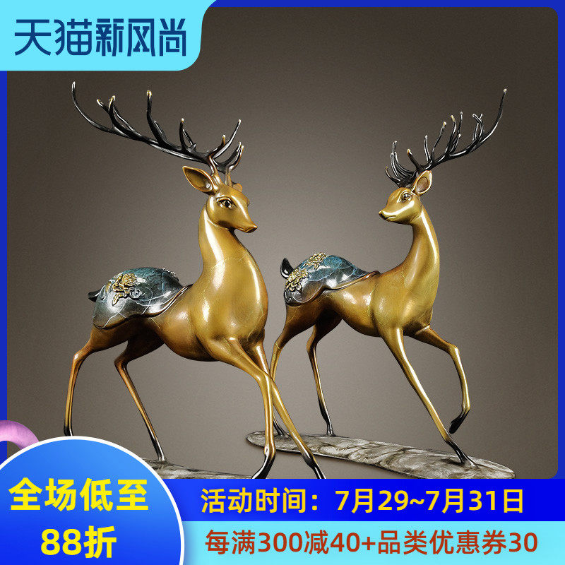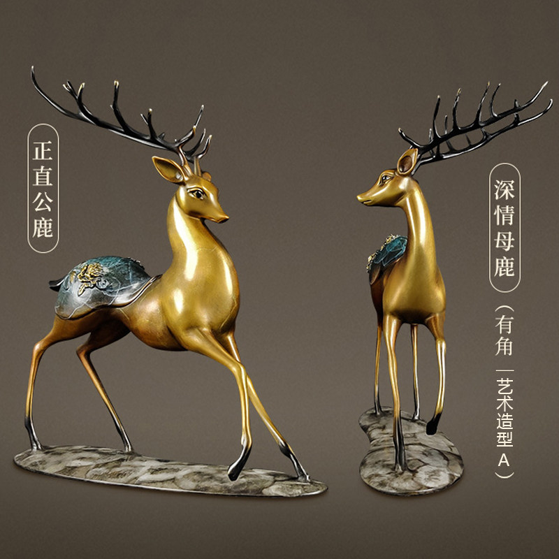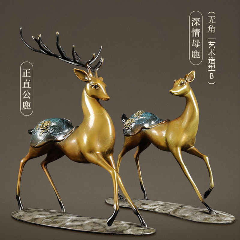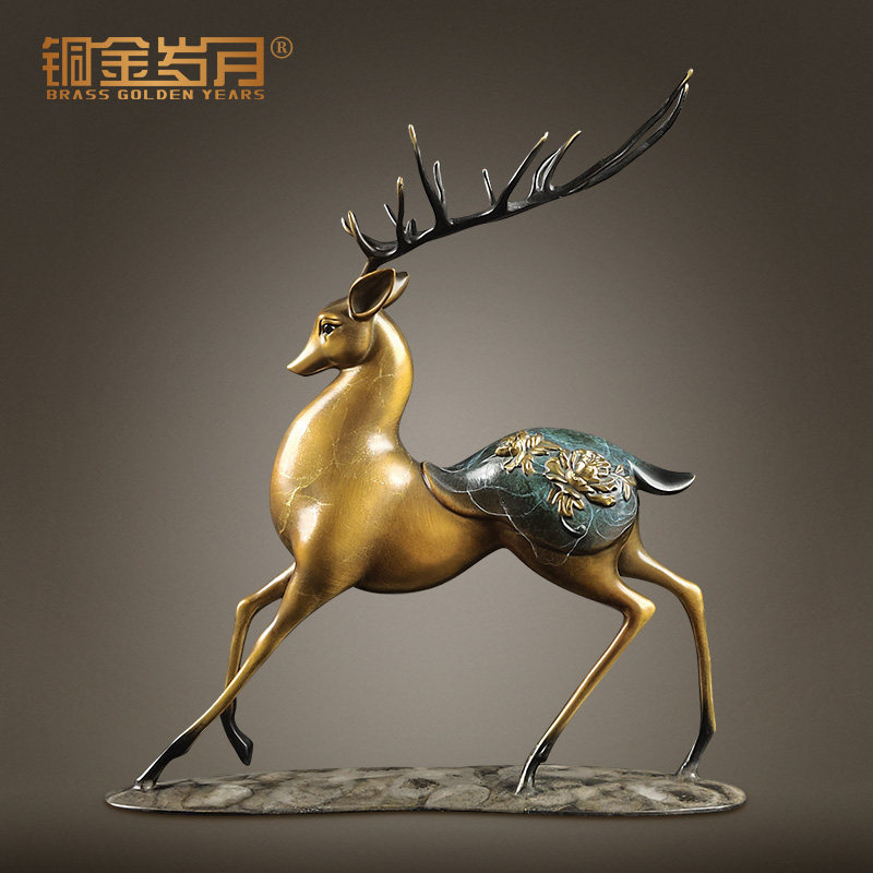铜金岁月梅花鹿福鹿摆件新中式黄铜鹿博古架酒柜家居工艺品装饰品
