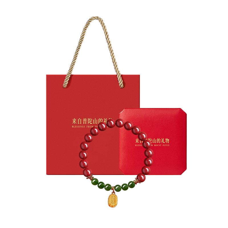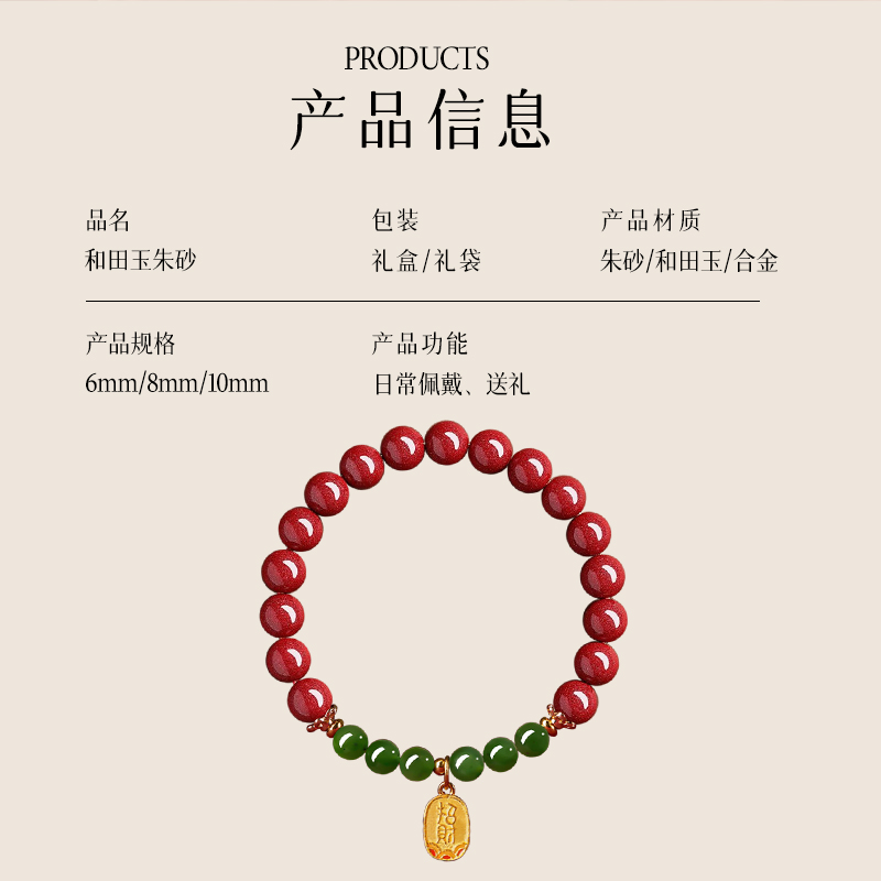 遇见普陀山高含量朱砂手串本命年手链女款和田玉转运珠福牌礼物男