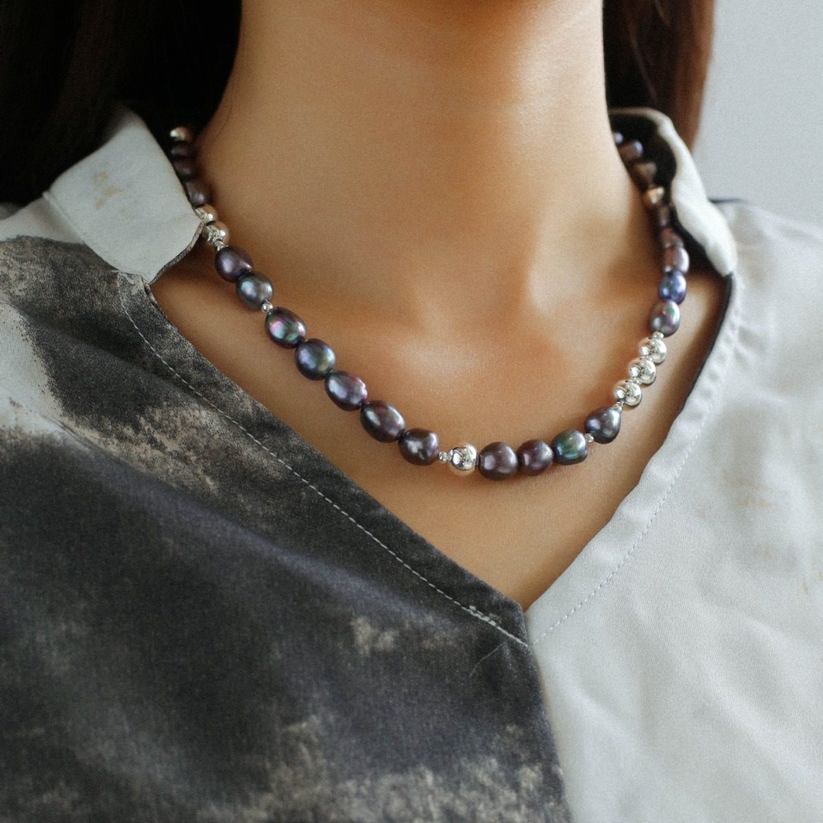 不规则灰色淡水珍珠颈链项链女ins风冷淡风时尚简约炫彩紫珍珠项