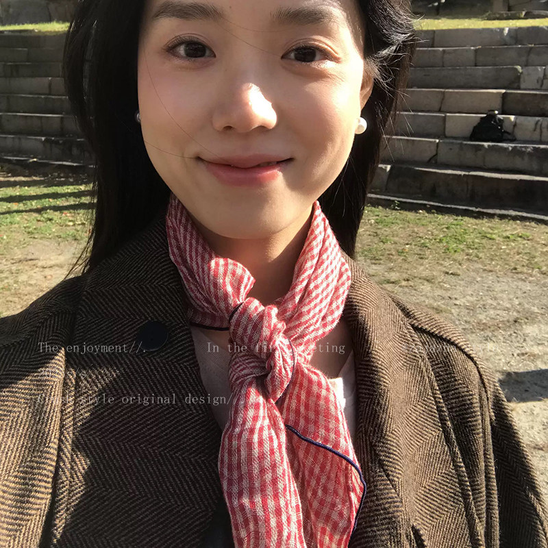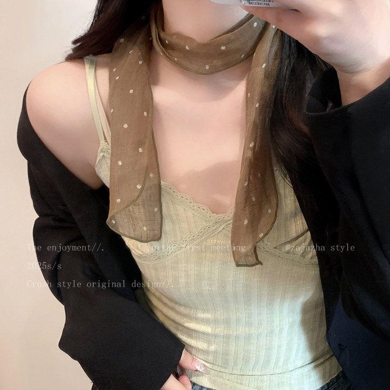 复古文艺波点亚麻丝巾女韩系百搭小众丝带薄款领巾系脖高级感配饰